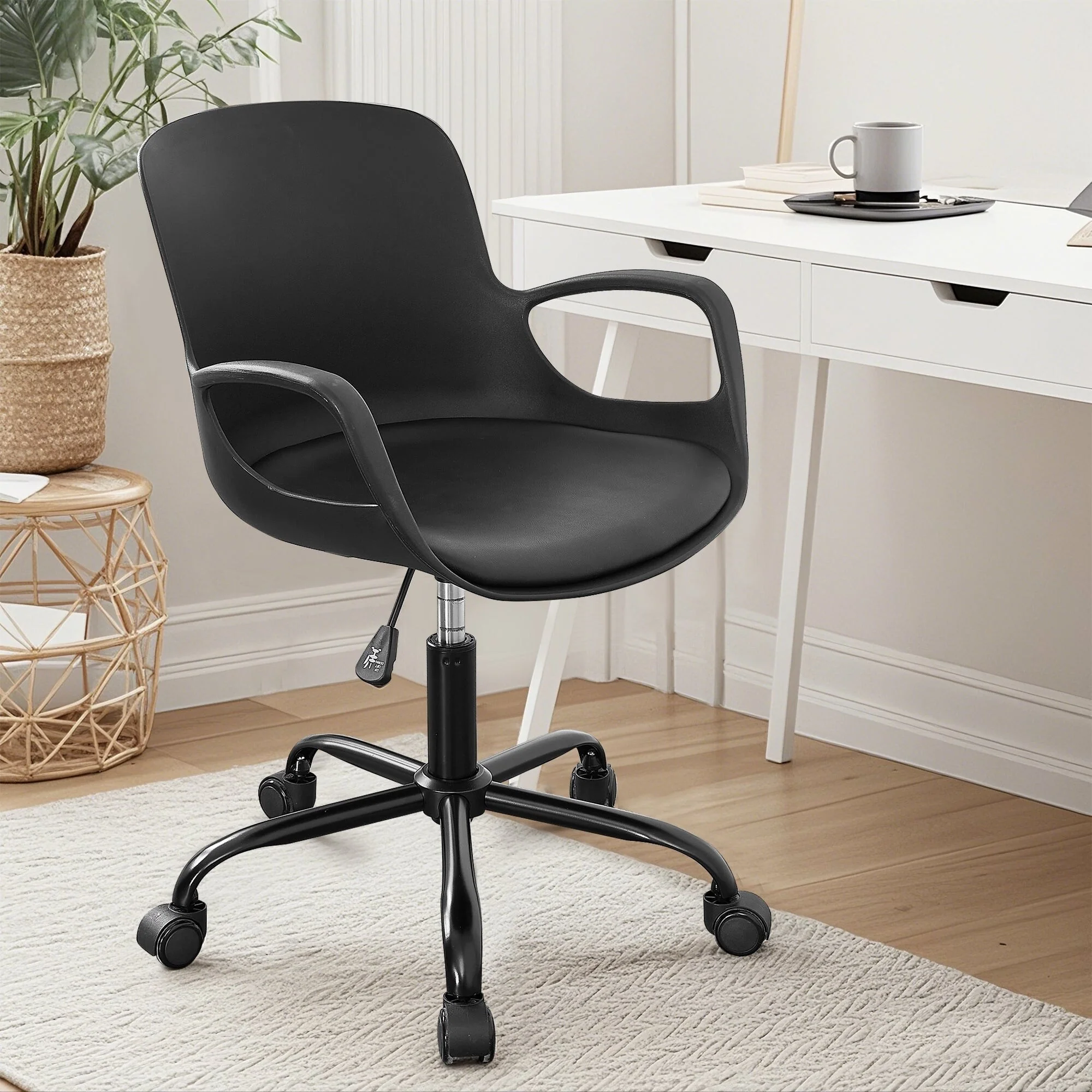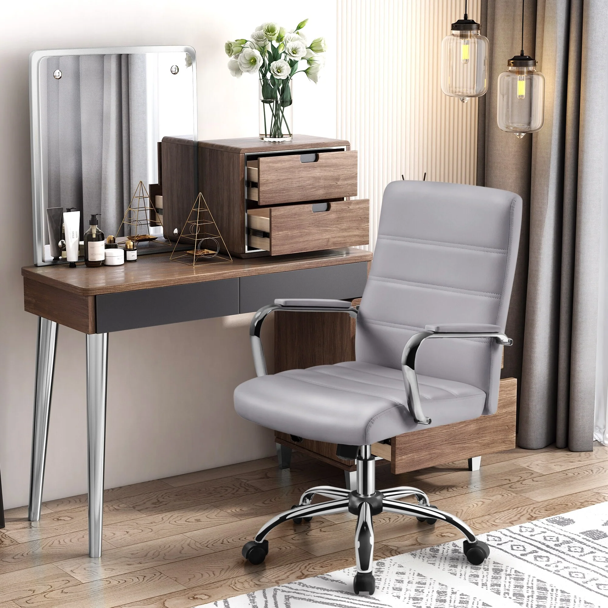 Upholstered Adjustable Swivel Office Chair, Beige+Natural