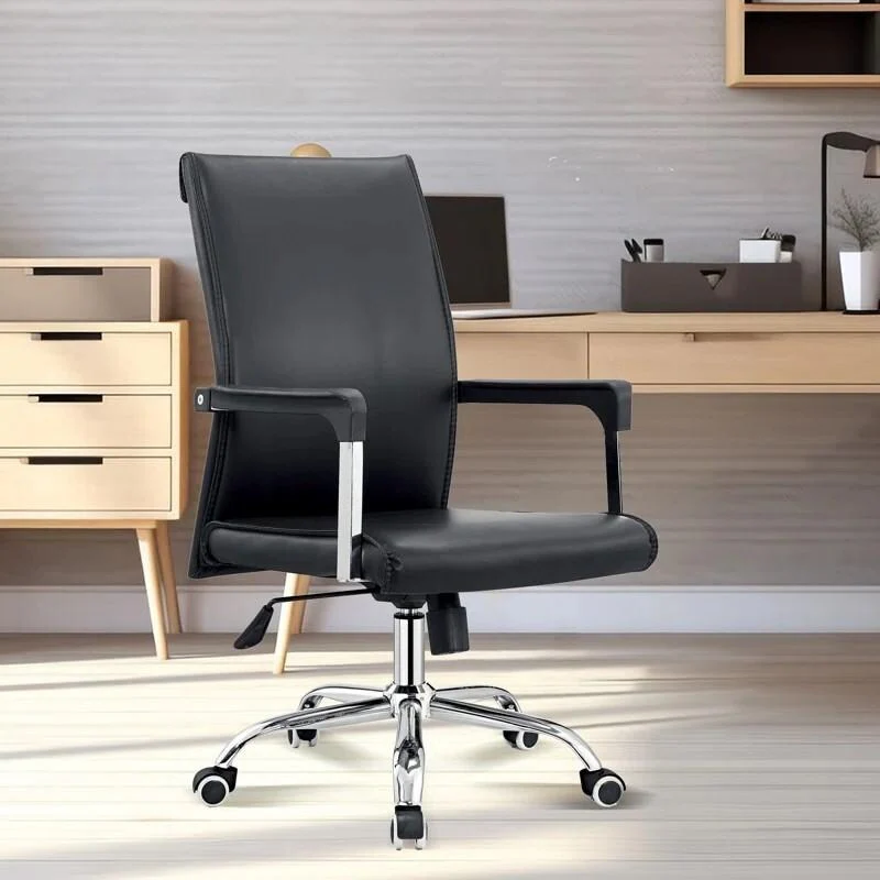 Black Adjustable Swivel Faux Leather Rolling Office Chair