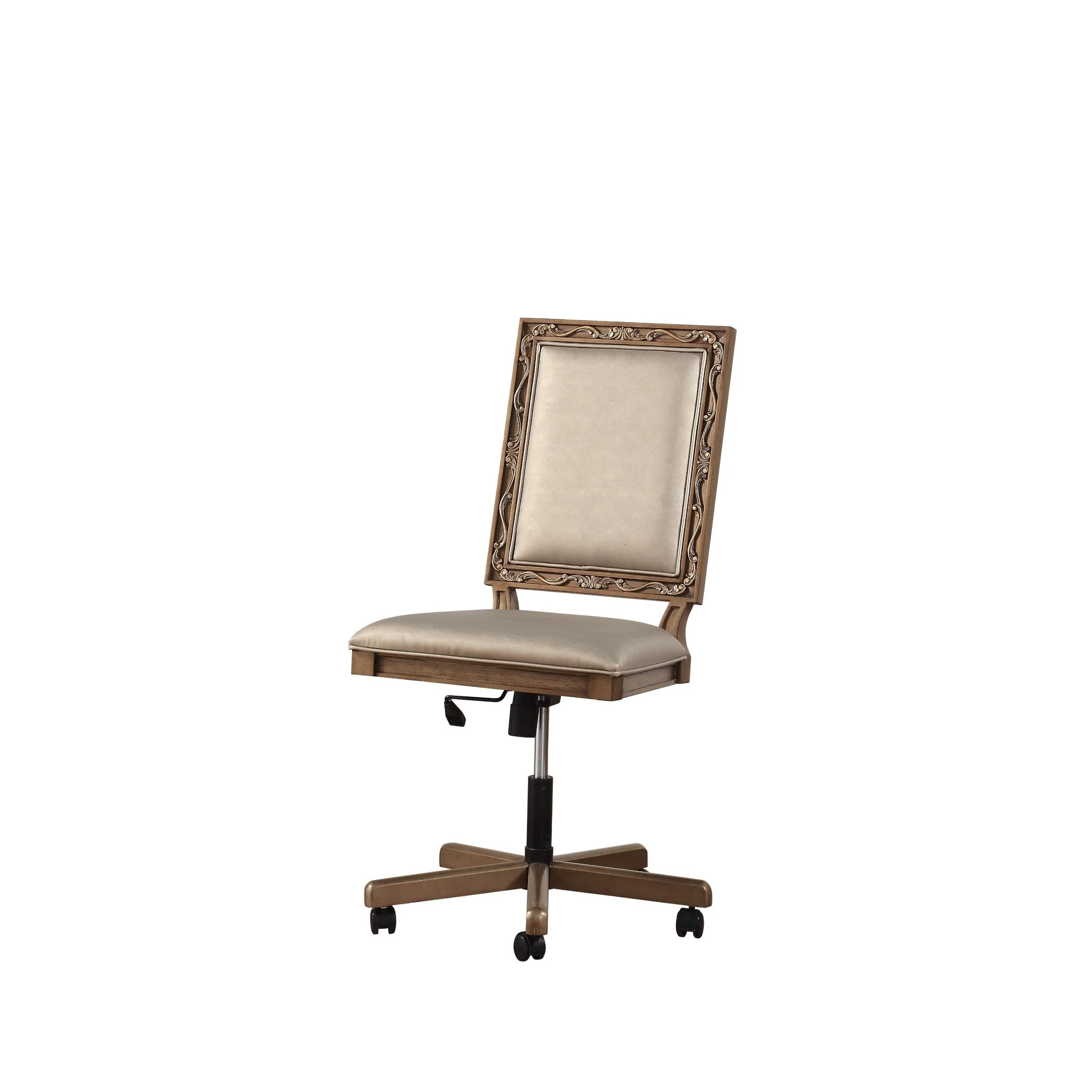 Swivel Office Chair, Beige Fabric with Nailhead Trim, Chrome