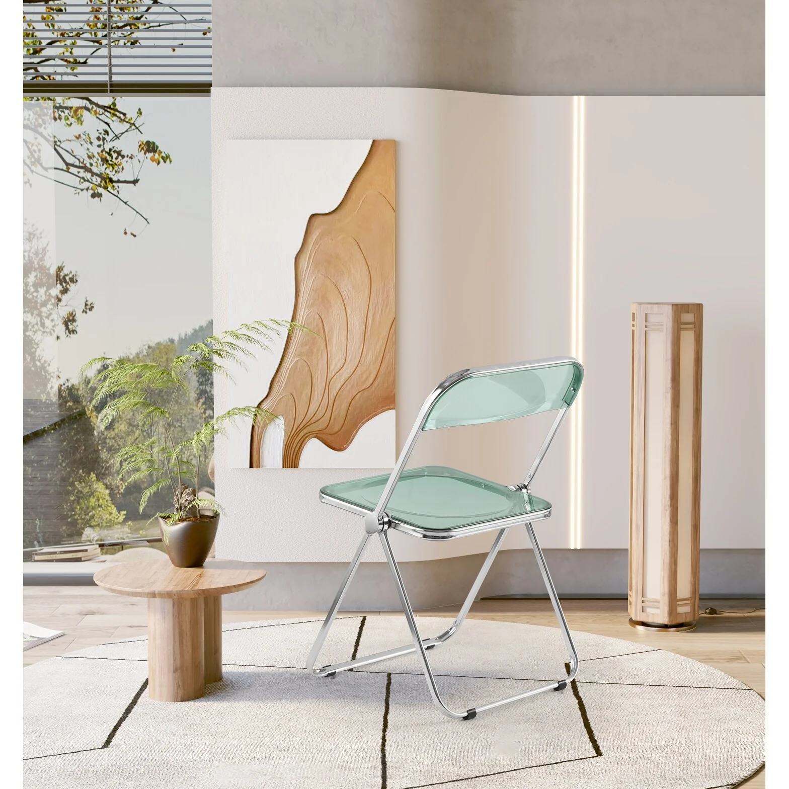18.5 Foldable Dining Chair with Transparent Seat and Steel Frame