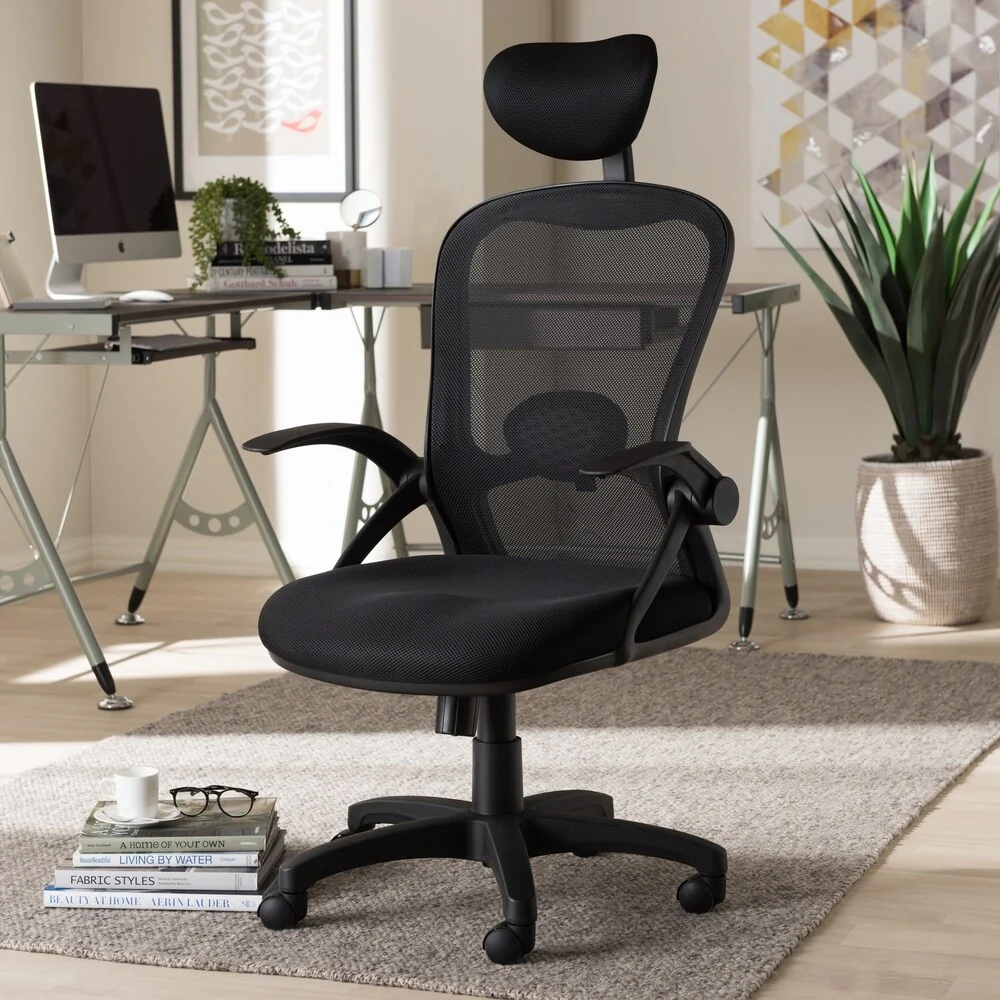 Contemporary Ergonomic Black Mesh Office Chair by Baxton Studio
