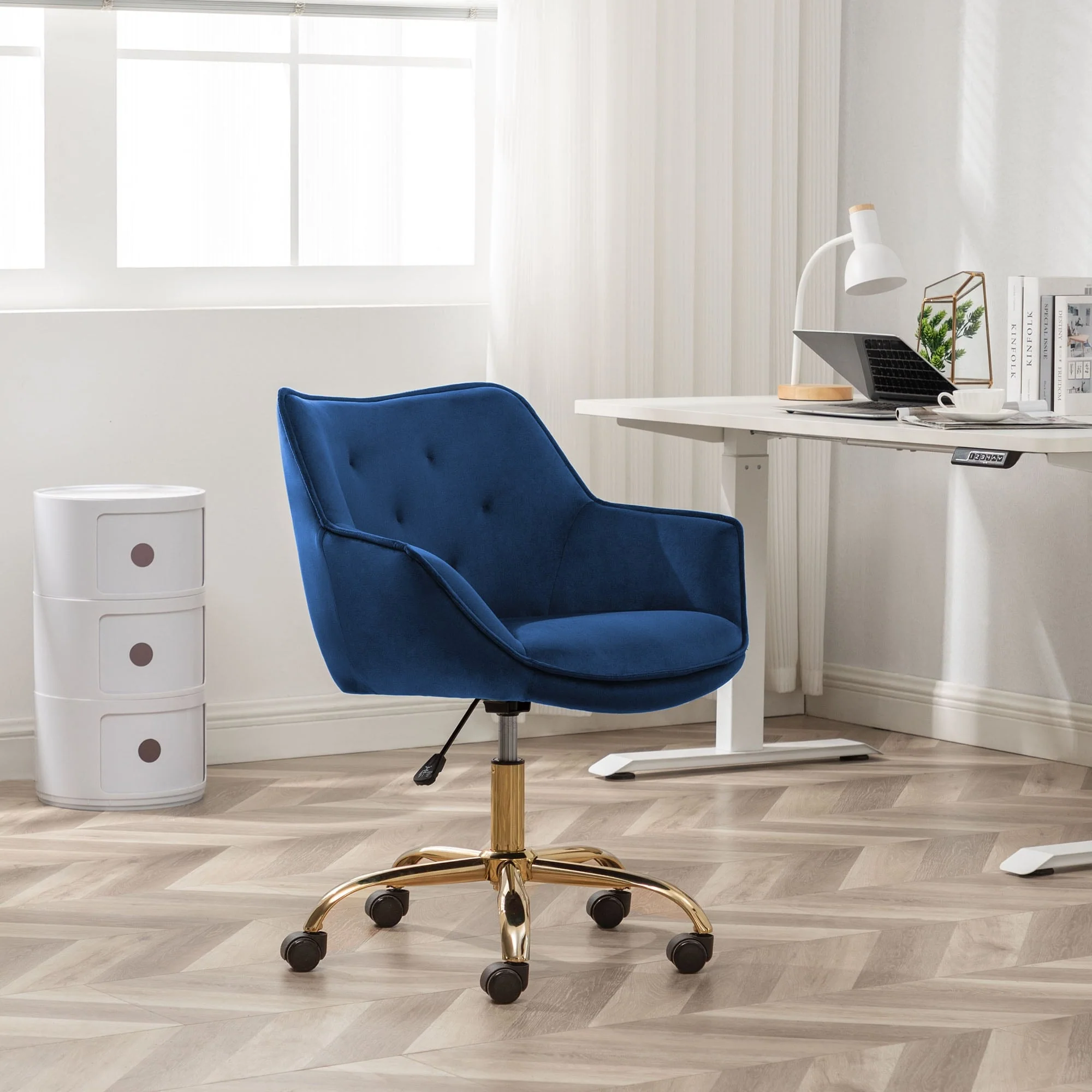 22.64 Inch Velvet Ring Backrest Swivel Office Chair