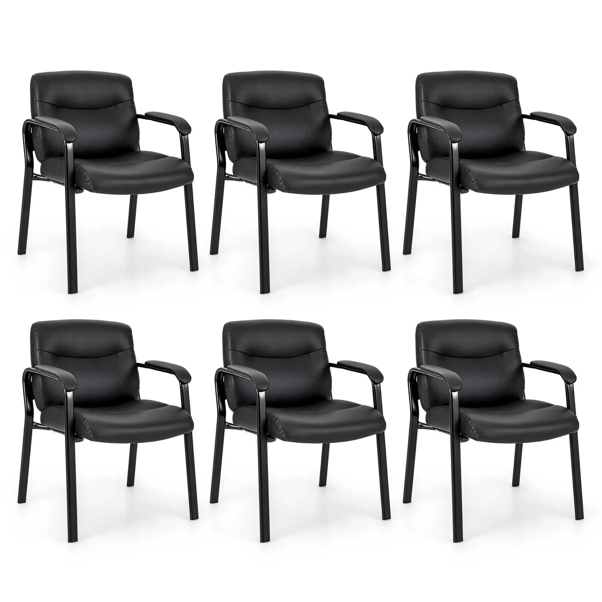 Gymax Set of 6 Waiting Room Chair No Wheels w/ Padded Armrests Guest