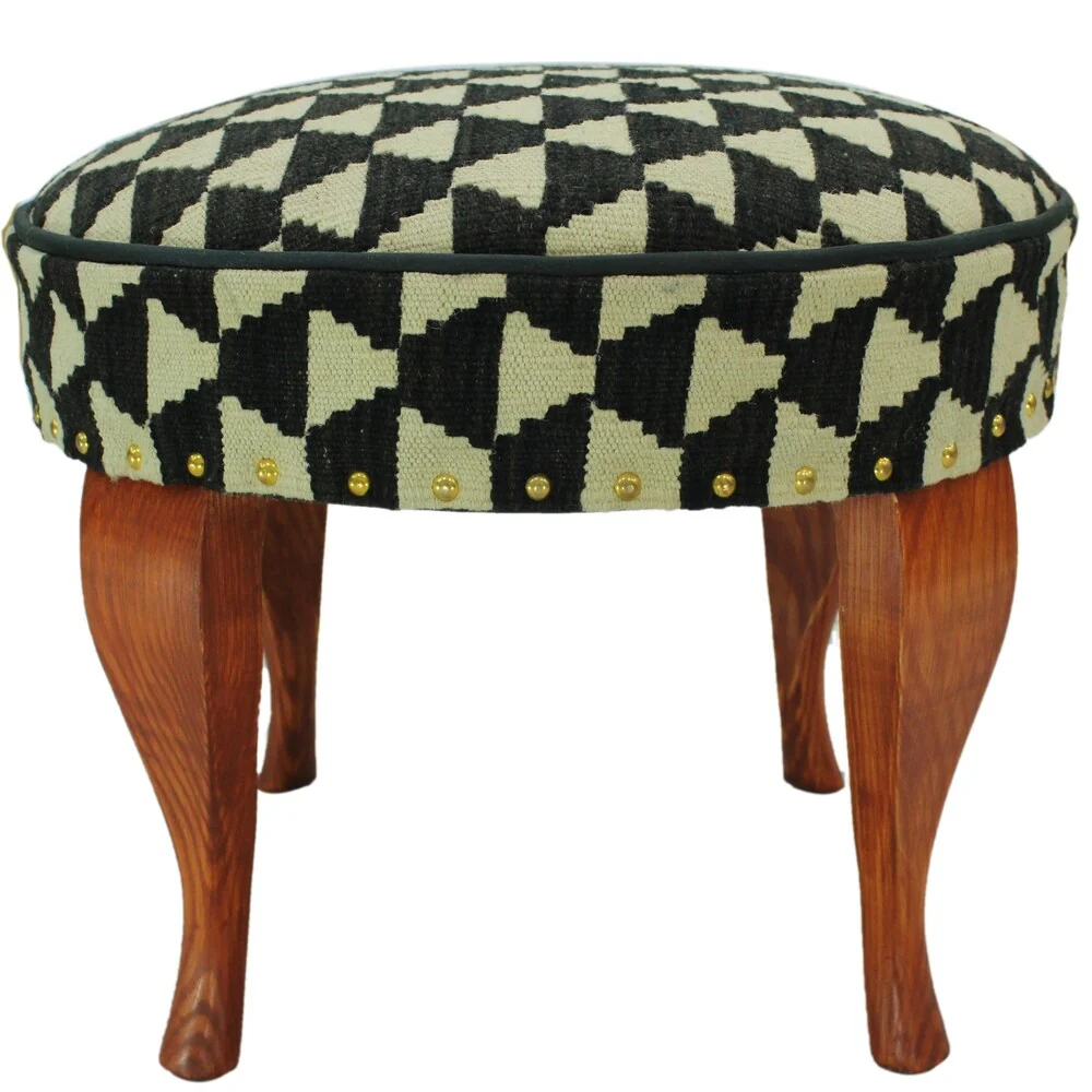 Easley Black/Ivory Kilim Upholstered Handmade Ottoman