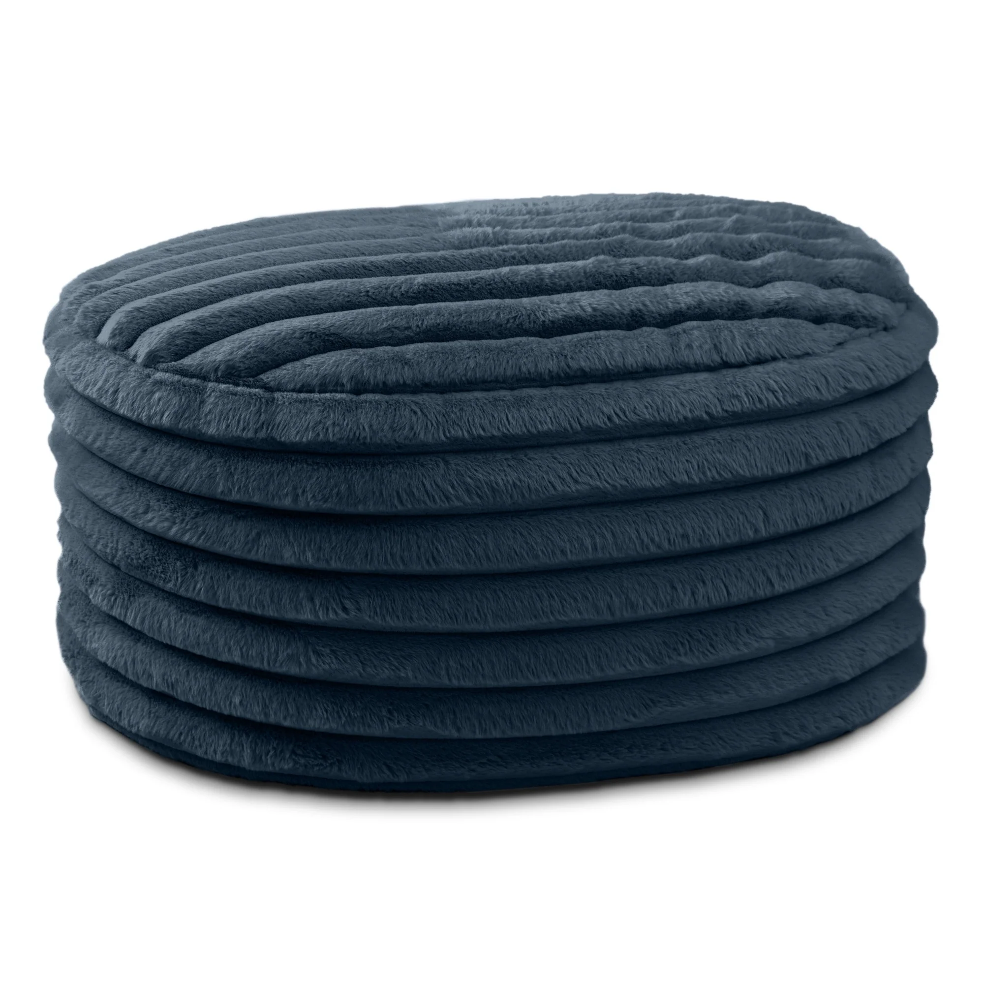 Large Plush Ribbed Faux Fur Pouf Ottoman - 35 - Midnight Blue
