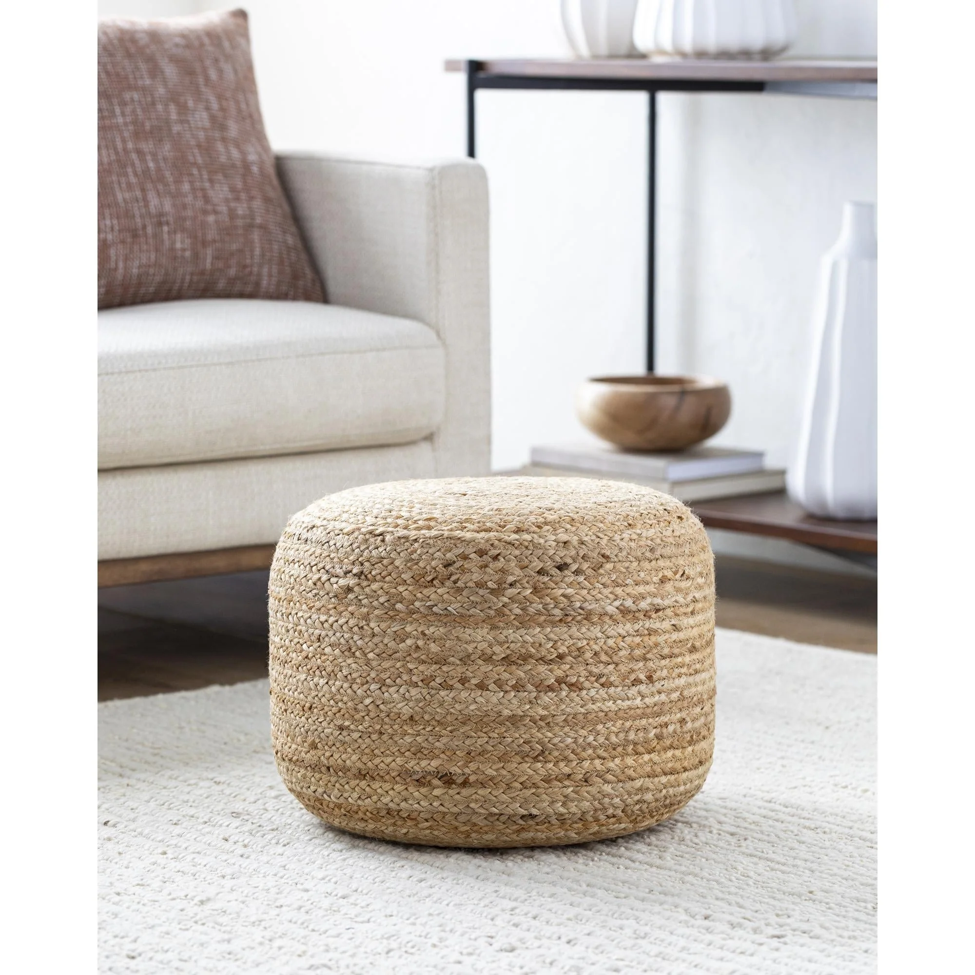 20 Tan Hand Braided Round Jute Pouf Ottoman