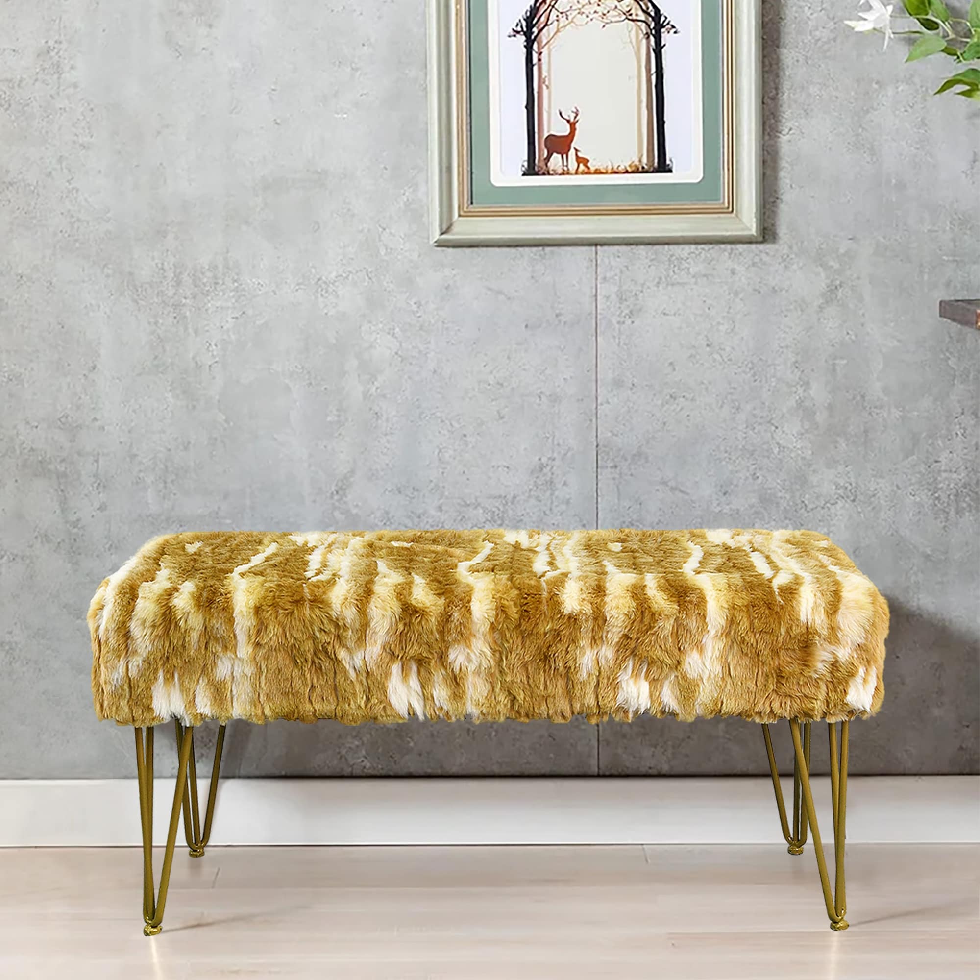 Home Soft Things Soft Fauxfur Ottoman Fuzzy Entryway Bench Seat