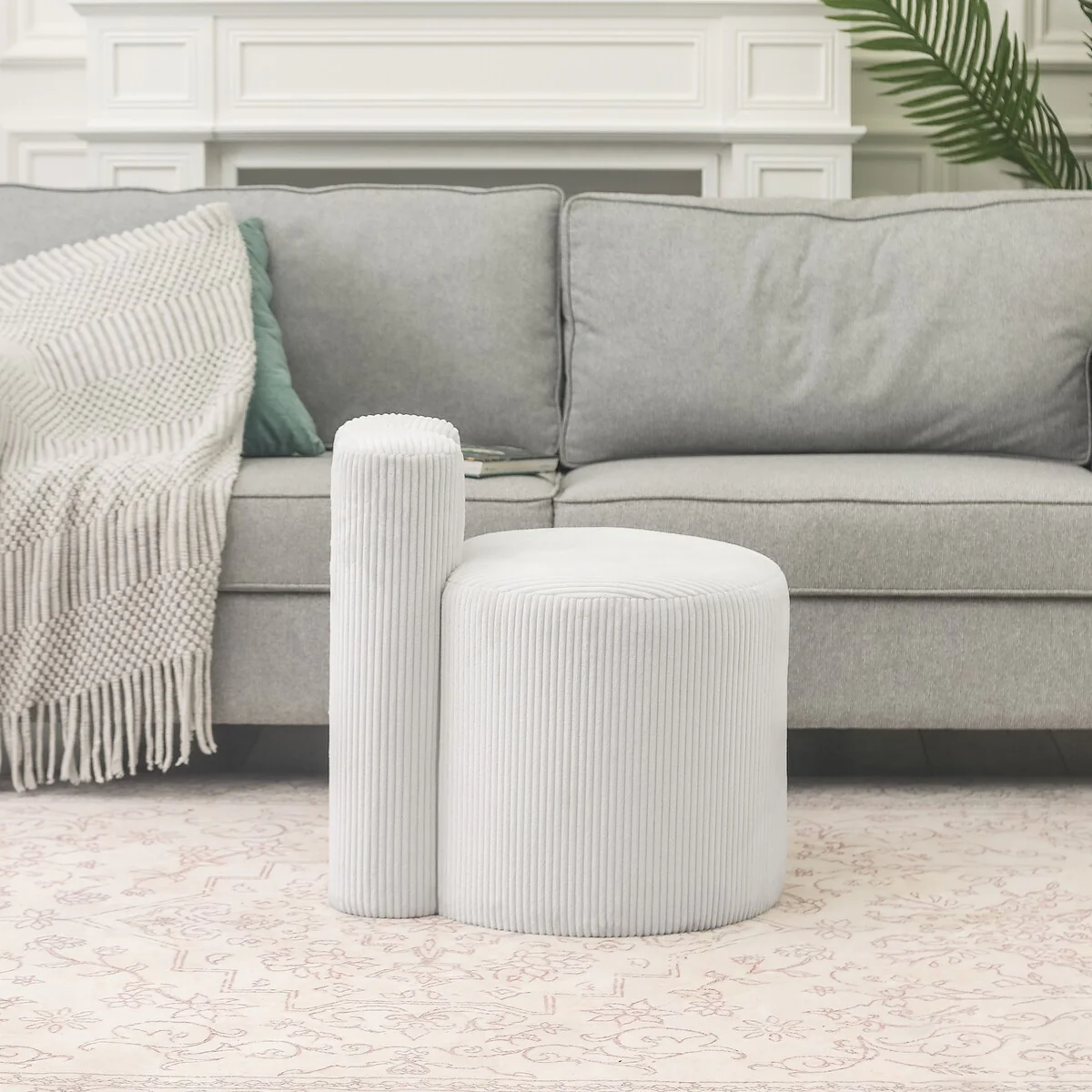 KINWELL Round Upholstered Pouf Ottoman Footrest