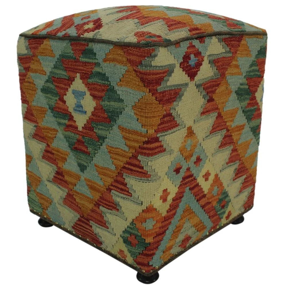 Calderon Rust/Ivory Handmade Kilim Upholstered Ottoman 16x16x20