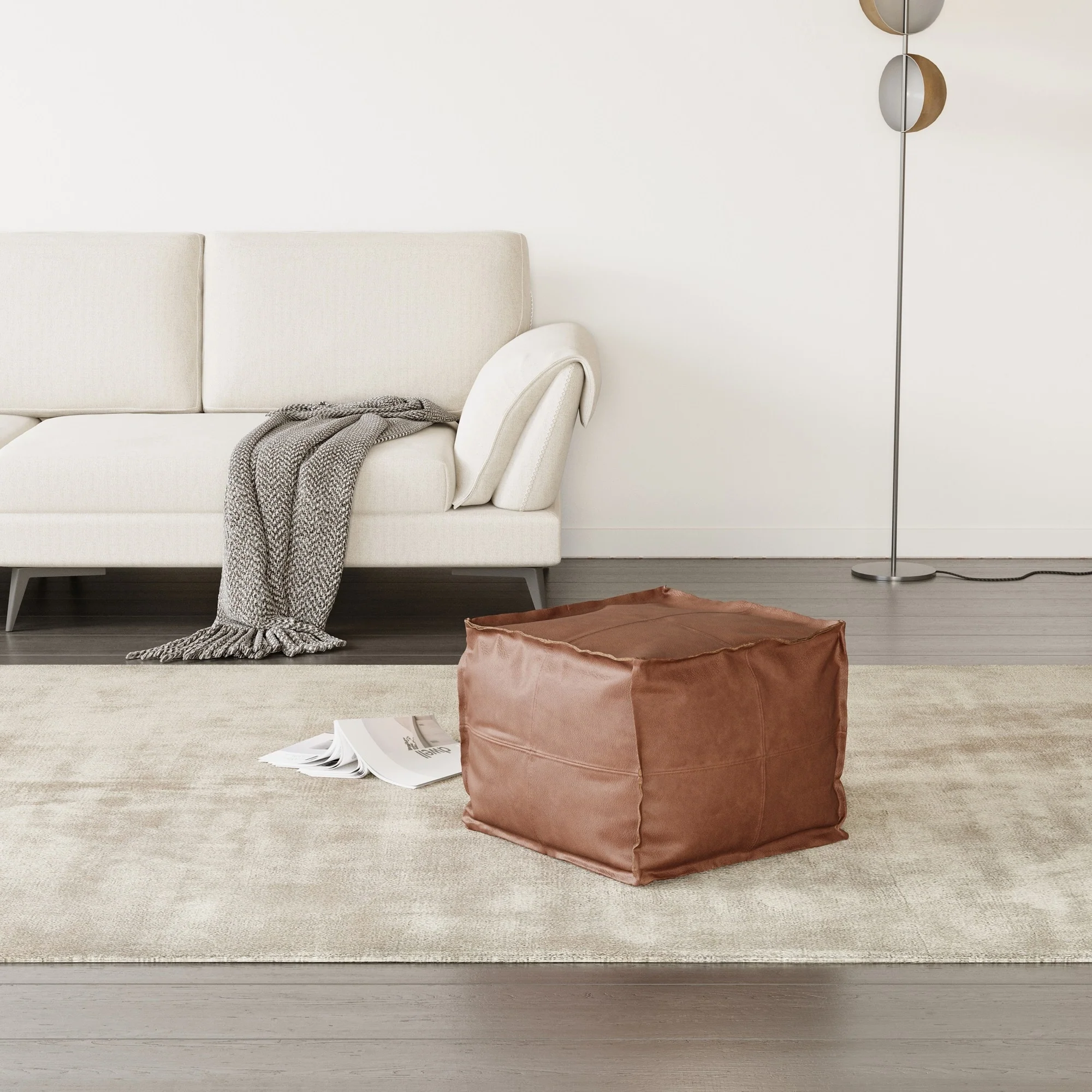 CO-Z 18'' Modern Boho Genuine Leather Pouf Ottoman