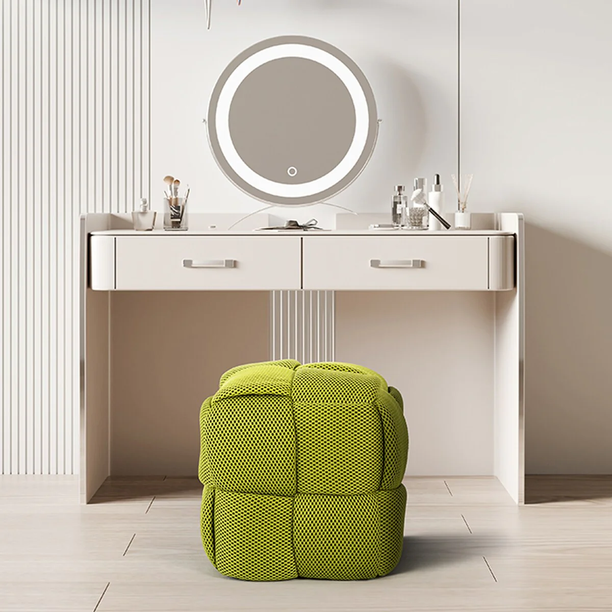 Modern 3D Breathable Fabric Square Ottoman