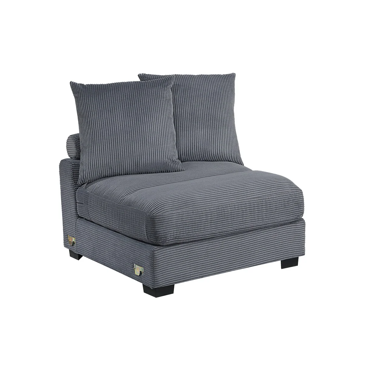 Antique Dark Grey Linen Rectangle Button-Tufted Ottoman