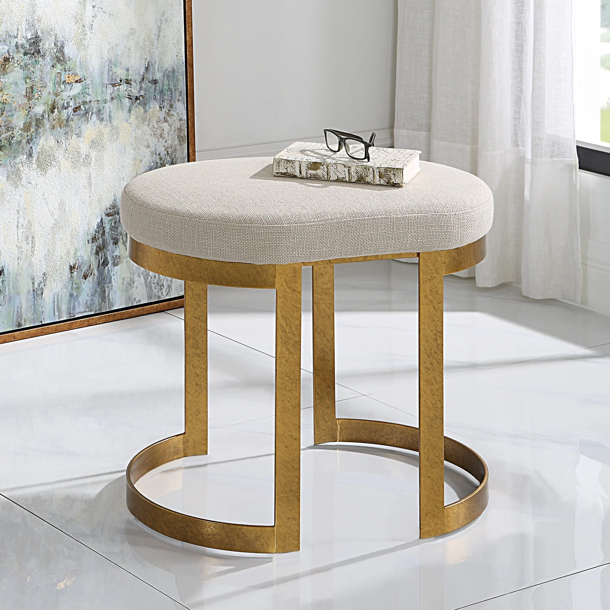 Hand Forged Accent Stool with Upholstered Seat - 24 - Beige and Gold