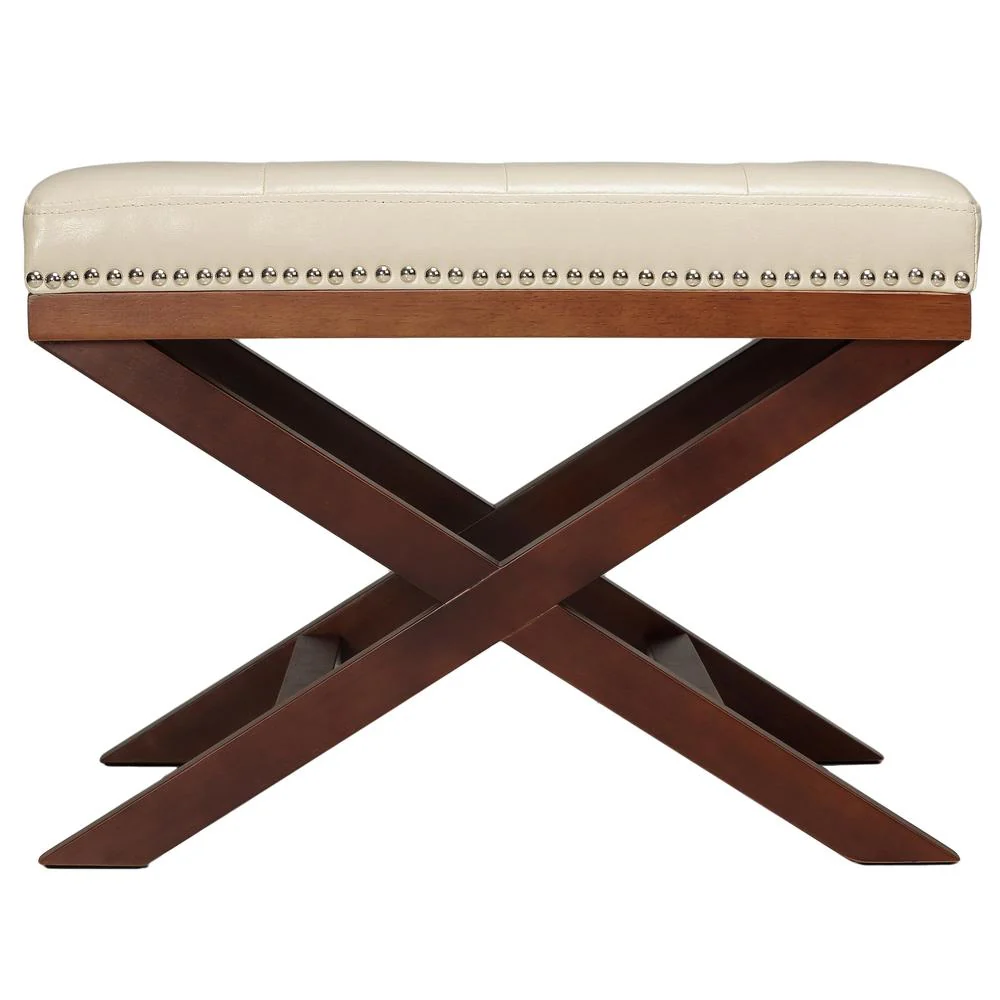 Porch & Den Palmer Cream and Walnut X-Leg Bench Ottoman