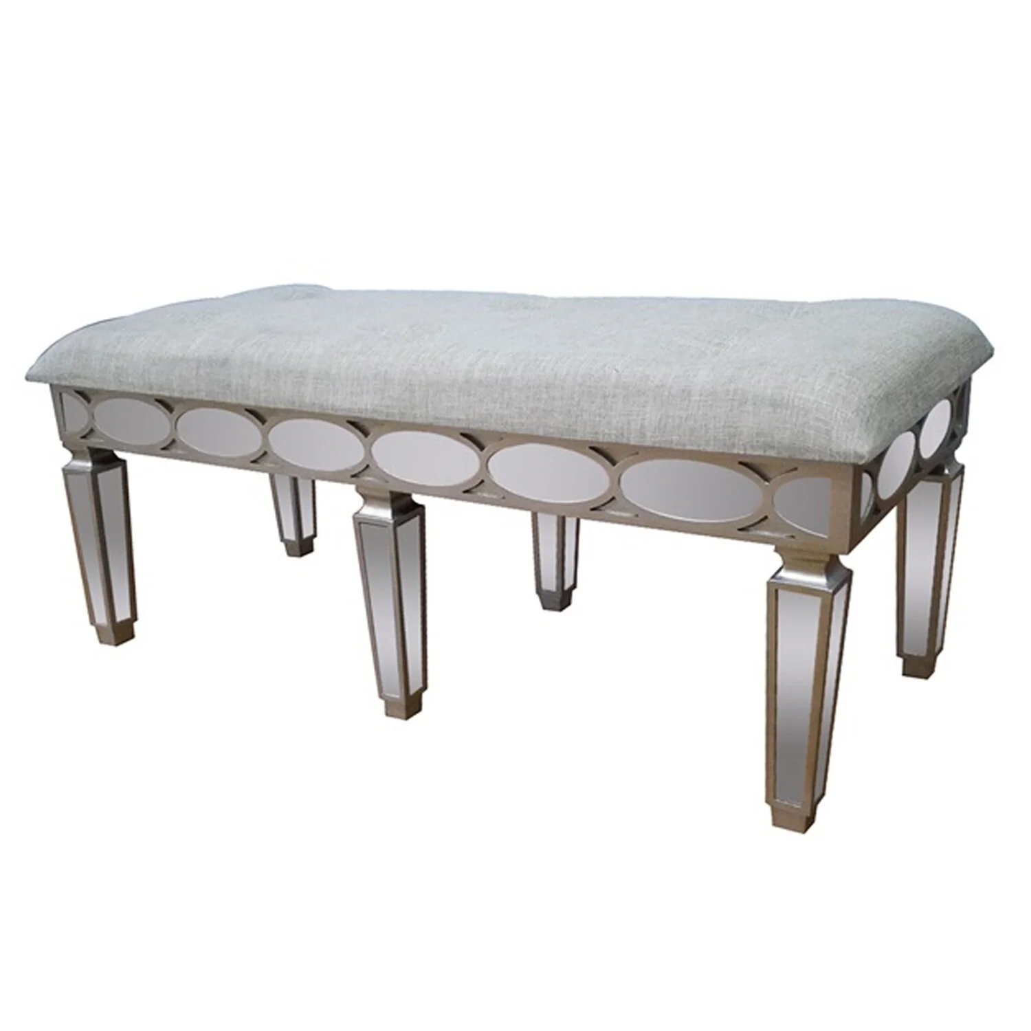 Benzara 16731 Wood Tufted Bench, Silver & Beige