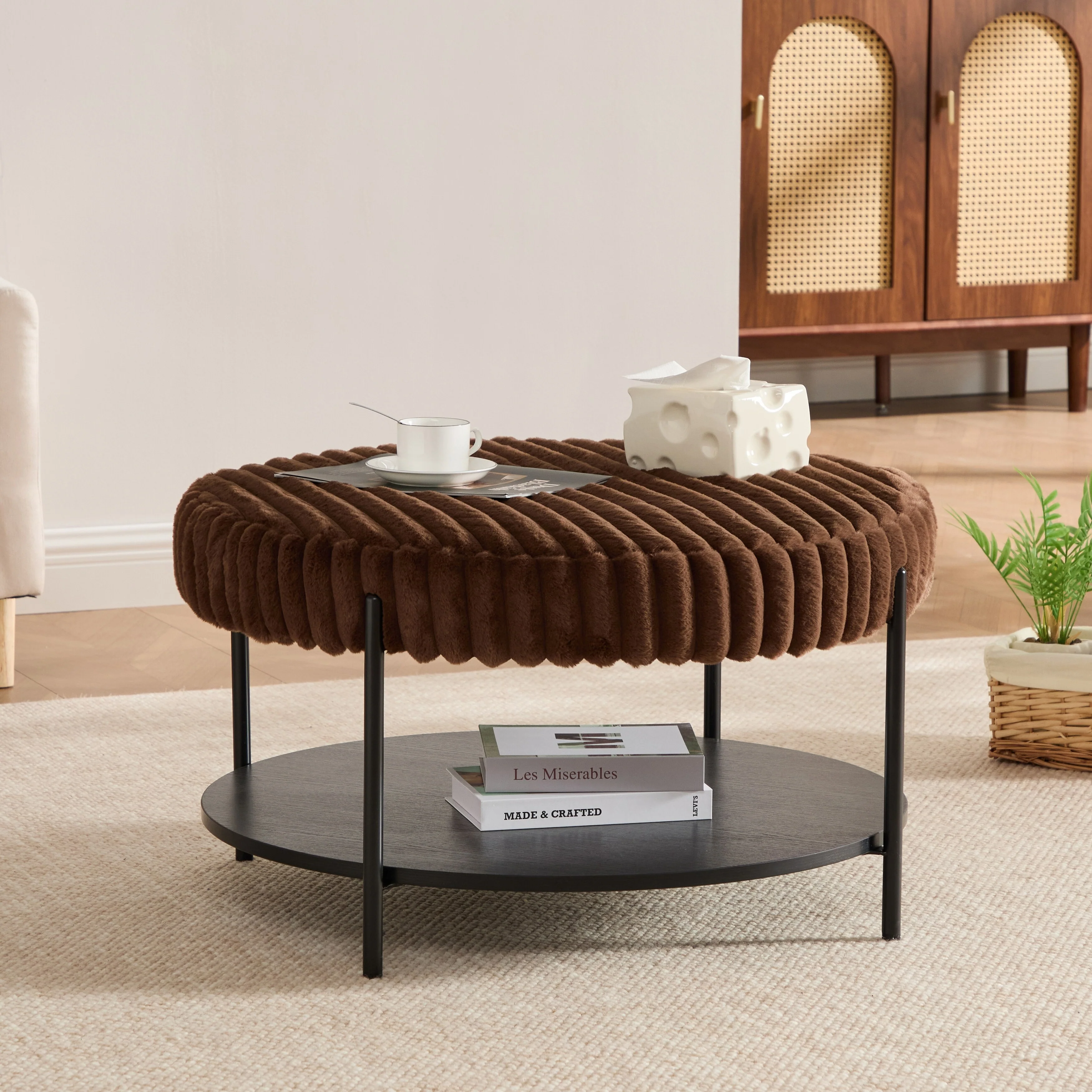 Large Faux Shearling Plush Round Pouf Ottoman - 25” - White