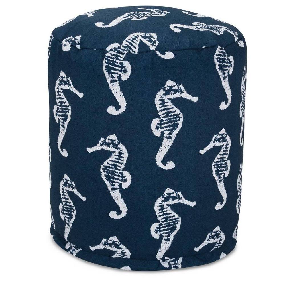 18 Blue Solid Textured Diamond Round Pouf Ottoman