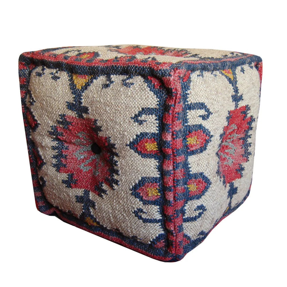 Handmade Kilim Ottoman (India) - 16 x 16 x 16