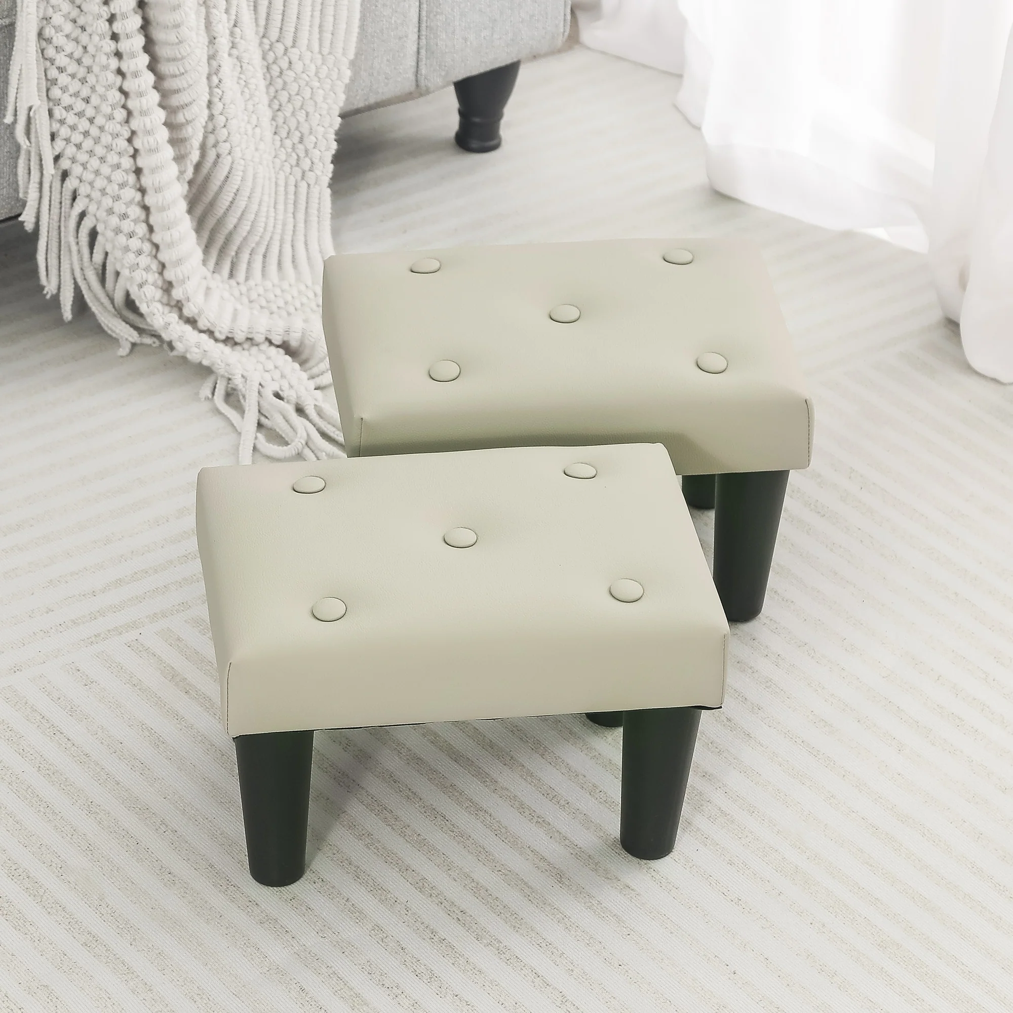 Zada Accent Ottoman, Coconut Beige Real and Faux Leather 34 Inch
