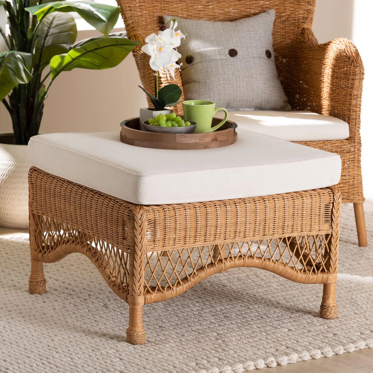 Brooklyn Bohemian Light Honey Braided Rattan Ottoman Stool