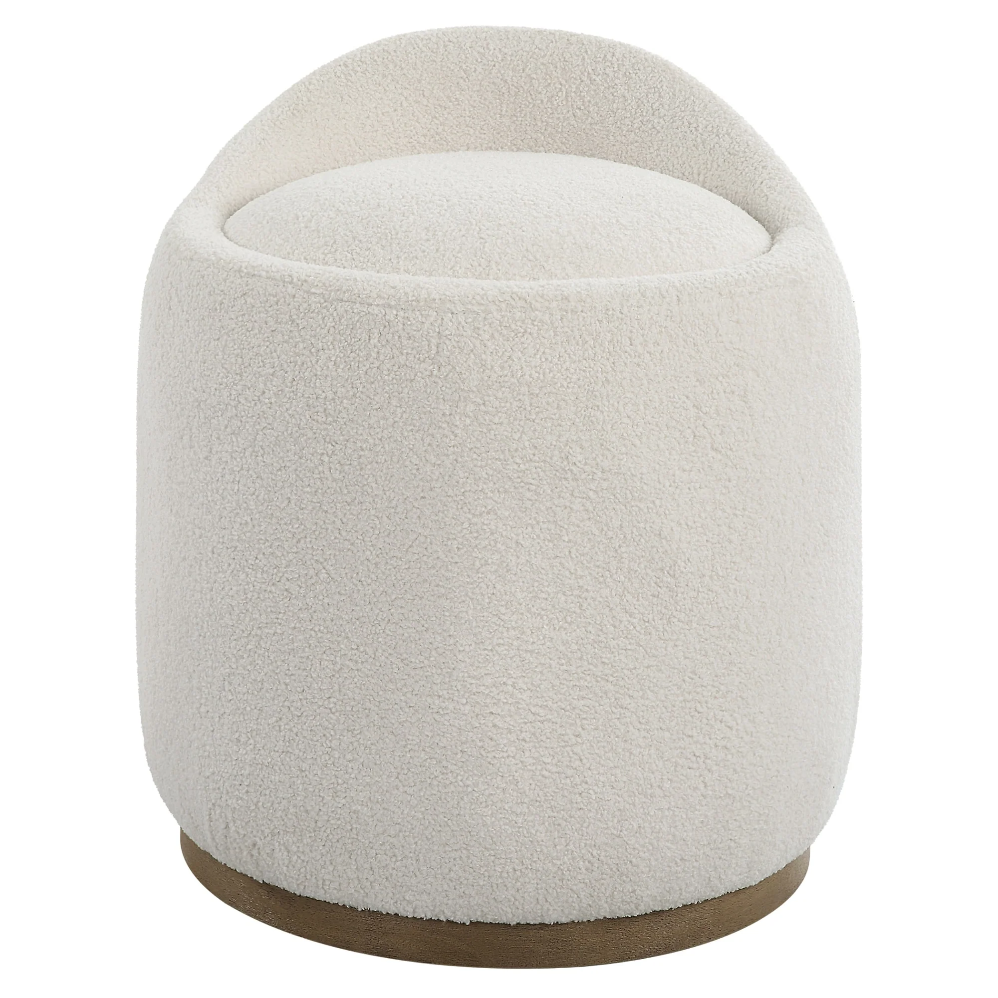 Harp & Finial Chandra Ottoman with Boucle Upholstery