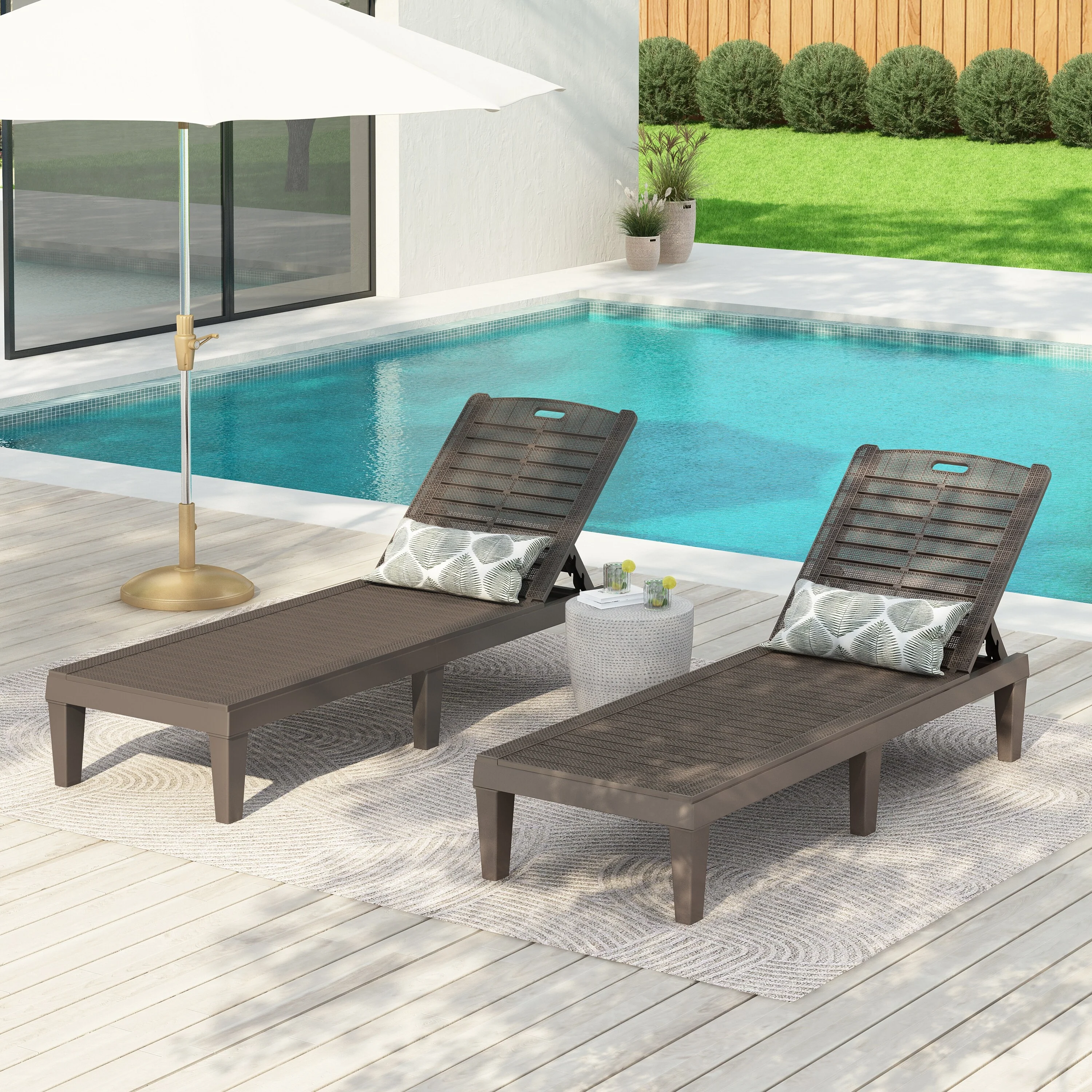 2-Pack Aluminum Lounger Outdoor Wicker Convertible Chaise Lounge
