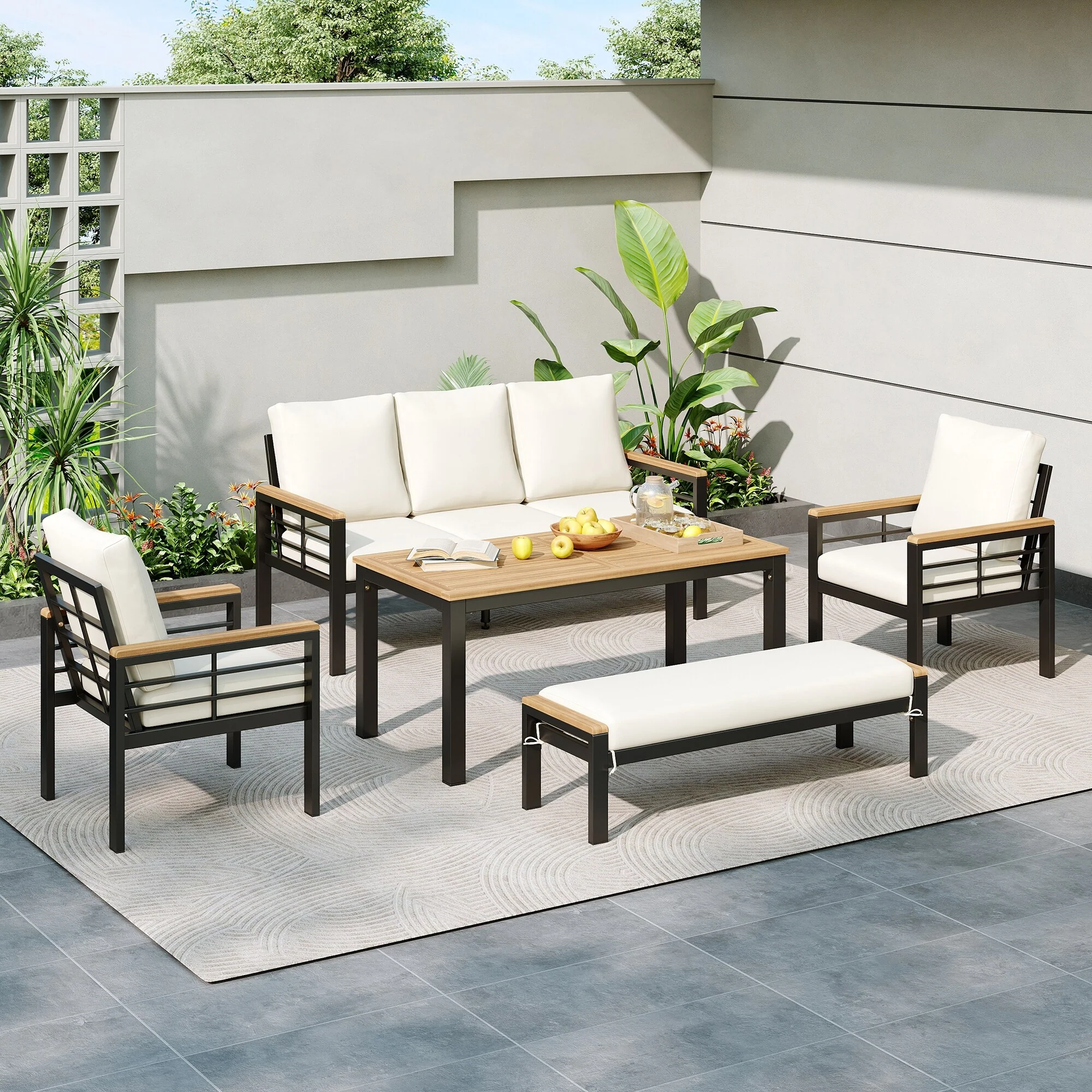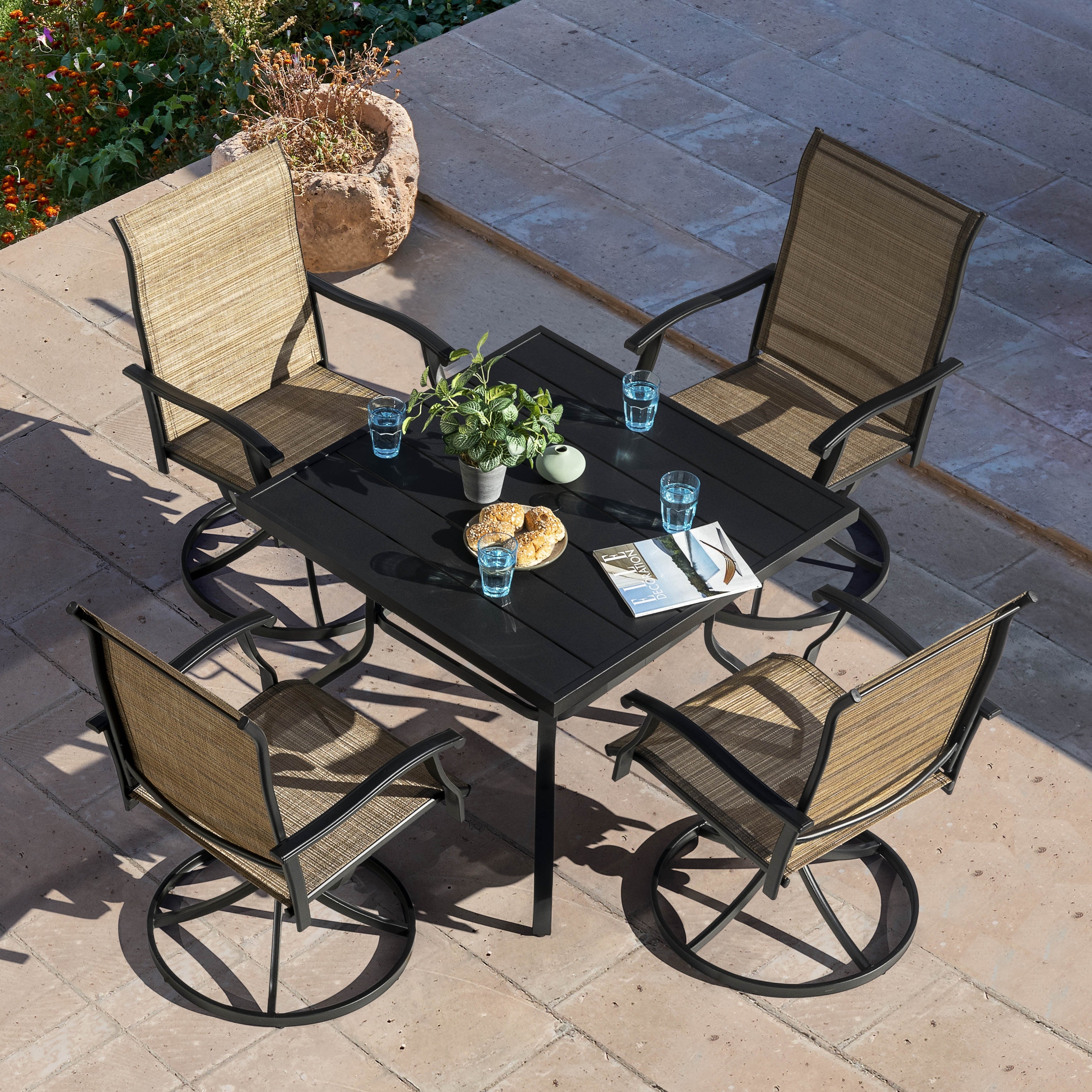 MAISON ARTS 5-piece Patio Dining Set with Swivel Textile Chairs