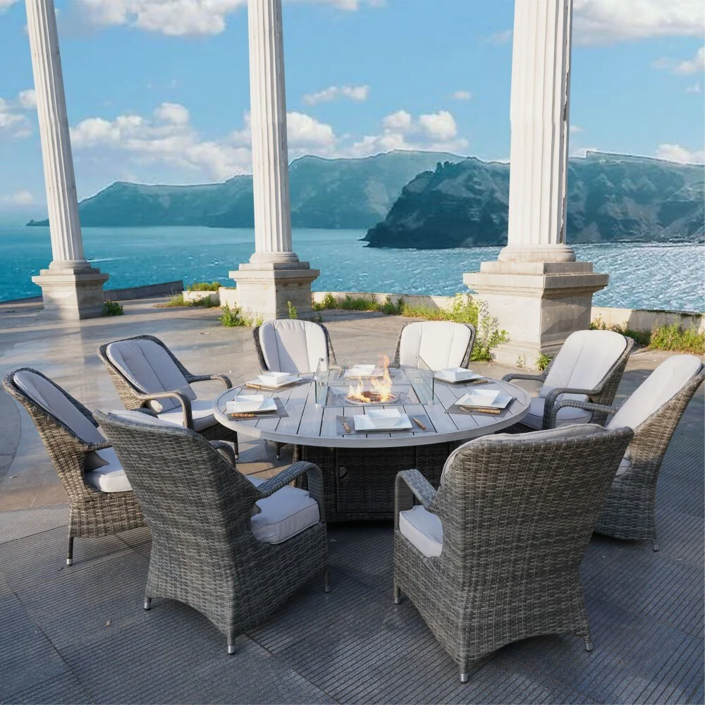9-Piece Ellington Outdoor Wicker Round Firepit Dining Set - N/A