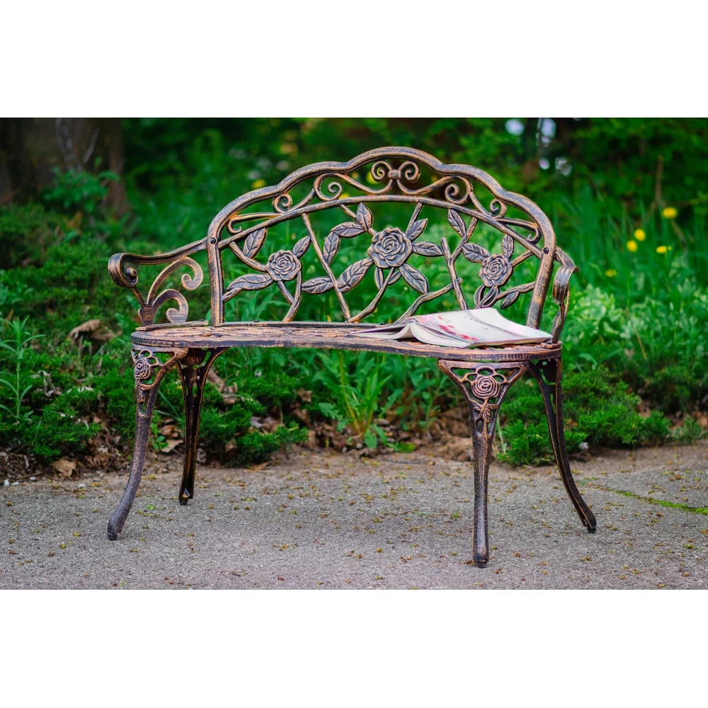 Bronze Metal Rose Garden Bench