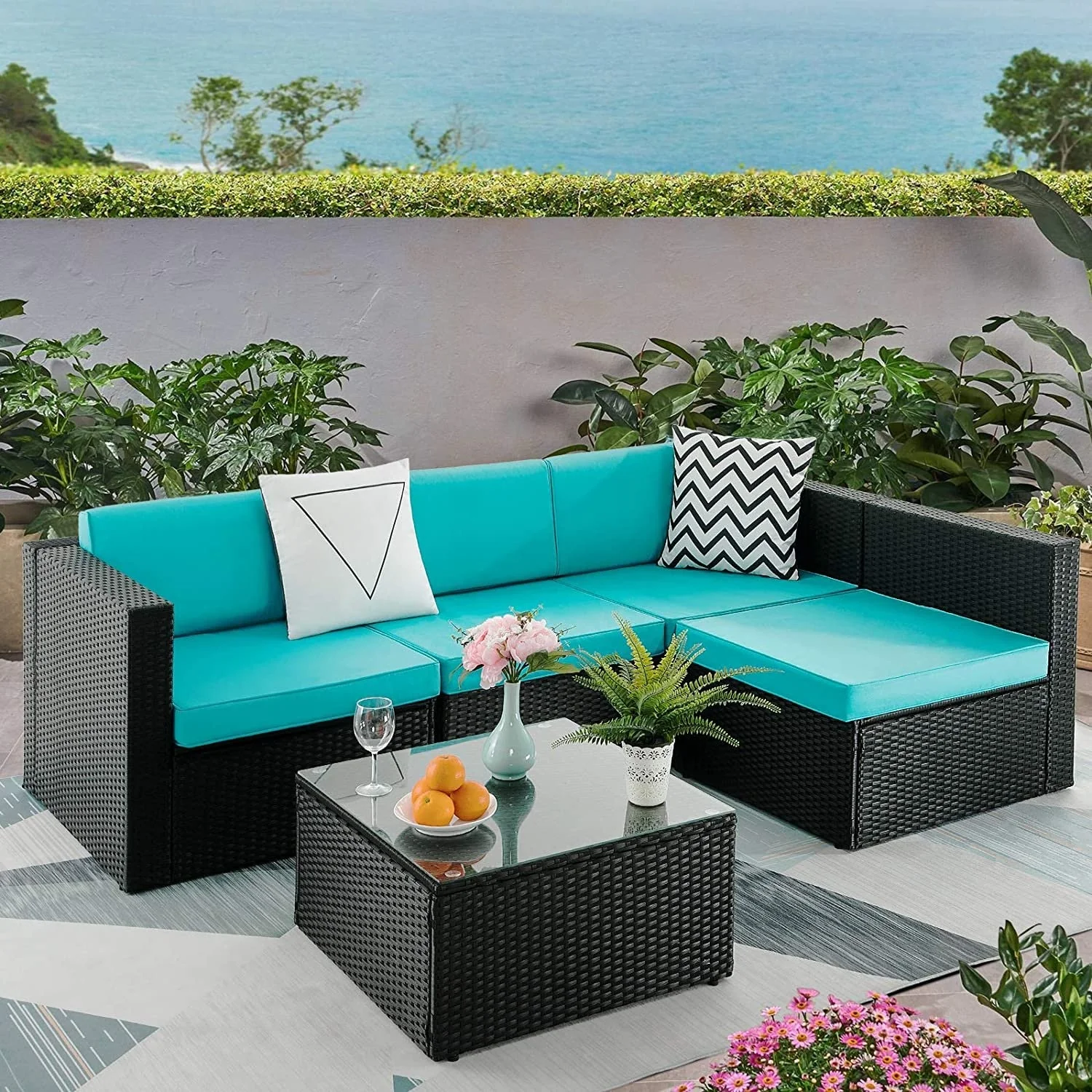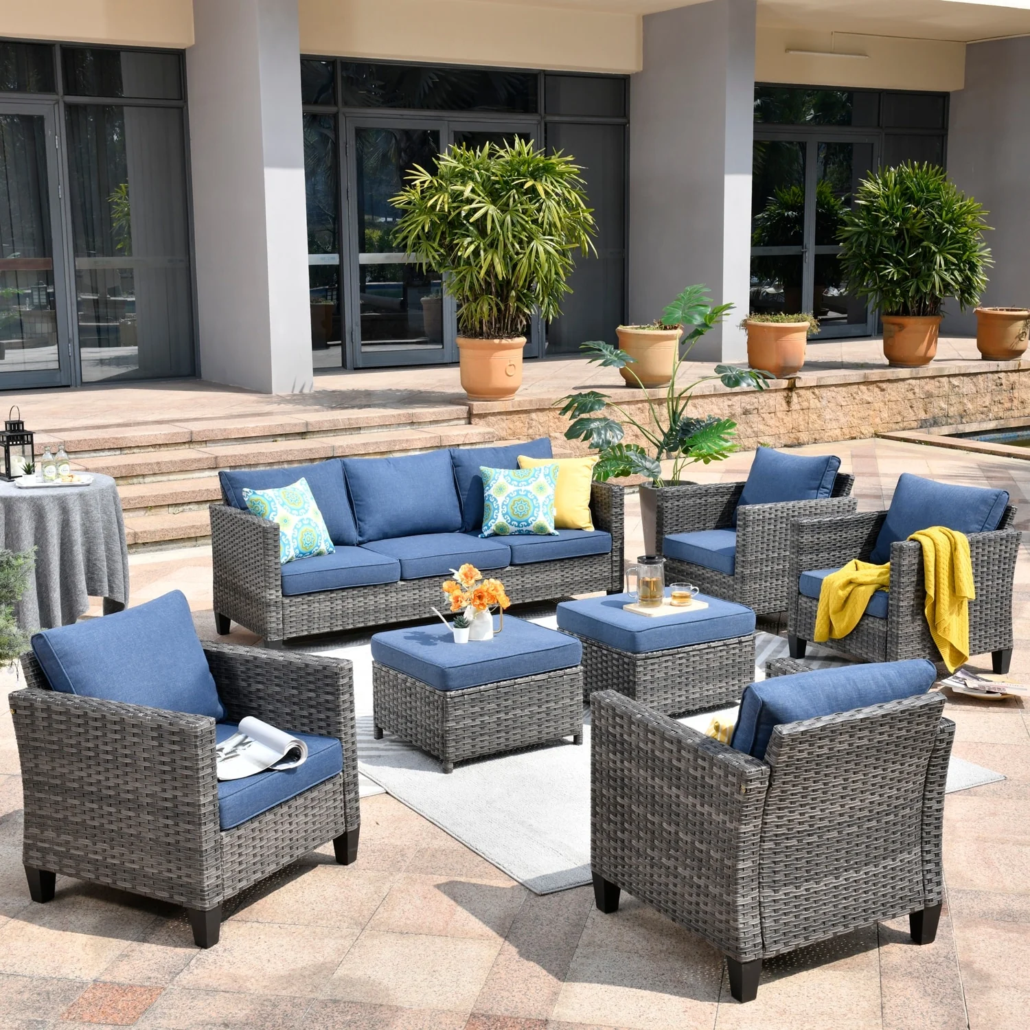 OVIOS 7-piece Patio Outdoor Wicker Conversation Set