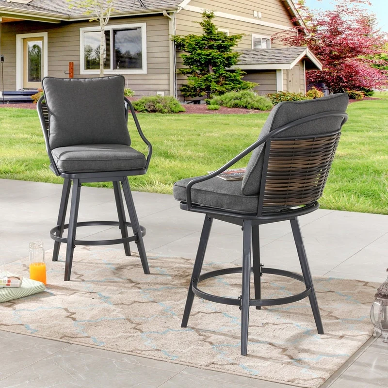 Patio Festival Outdoor Bar Stool with Grey Cushions (2-Pack)
