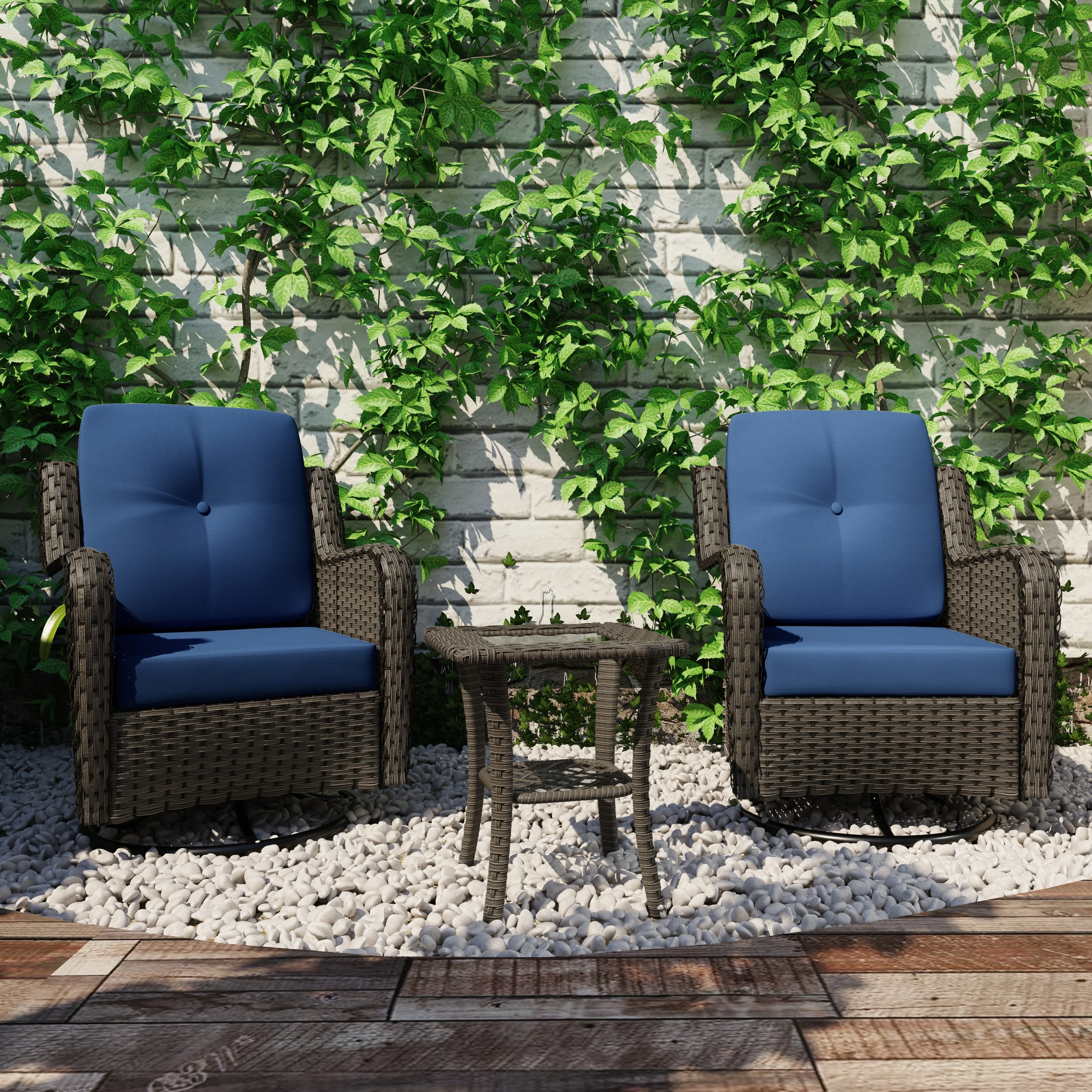 3 Piece Rattan Patio Bistro Set Outdoor Swivel Rocker Chairs