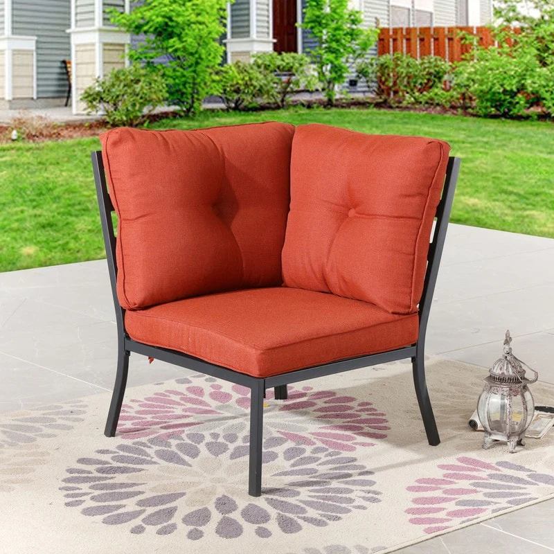 Patio Festival Outdoor Corner Chair with Red Cushion
