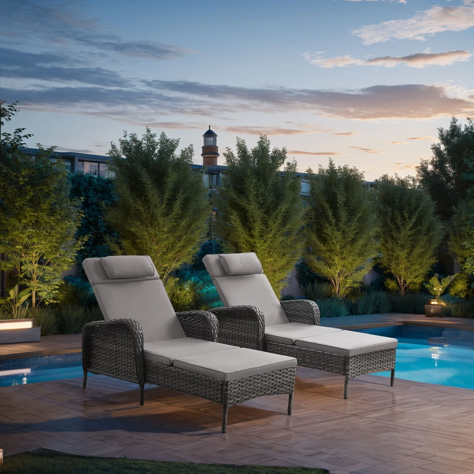 Outdoor PE Wicker Chaise Lounge Grey Rattan