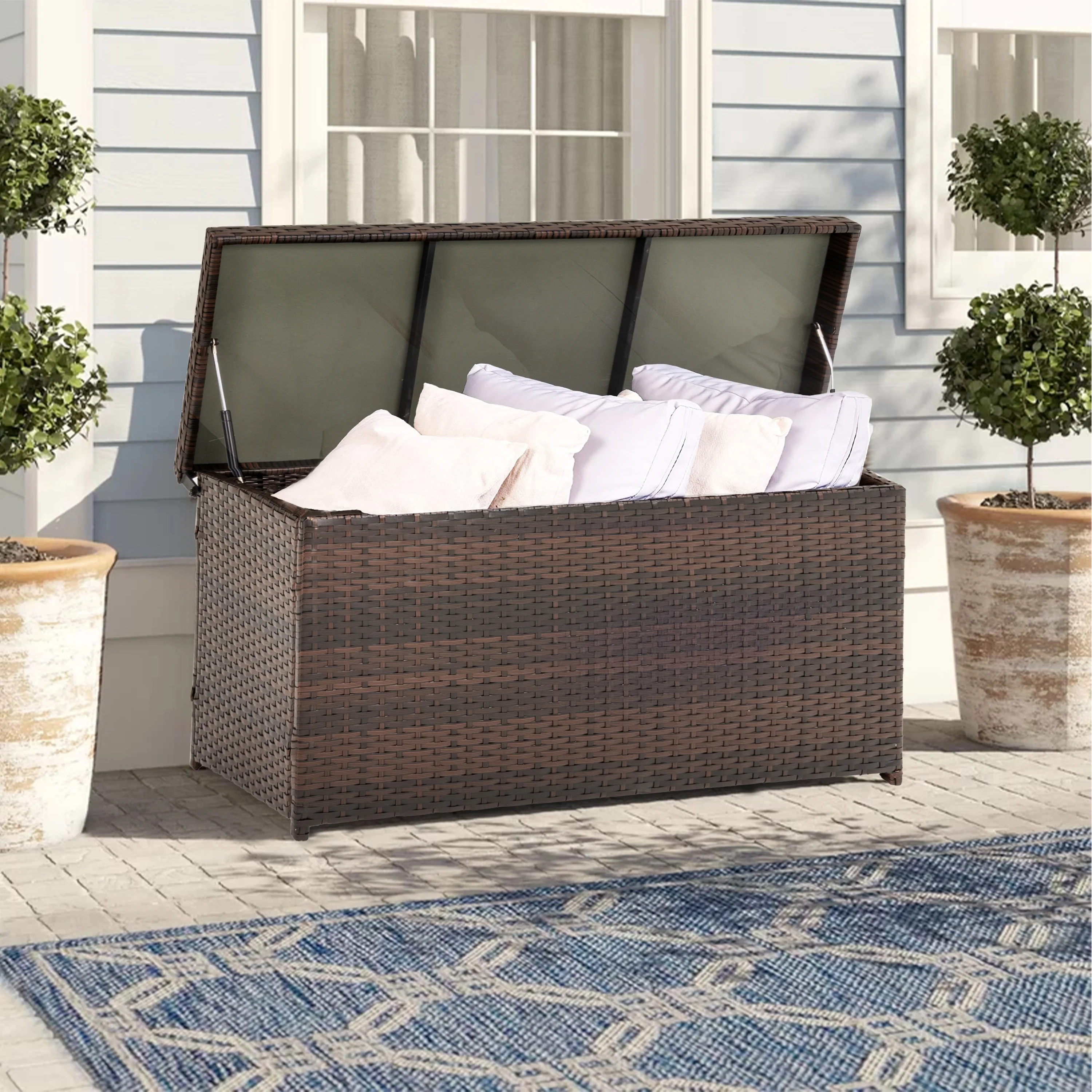 Outdoor Storage Box, 60 Gallon Wicker Patio Deck Boxes with Lid