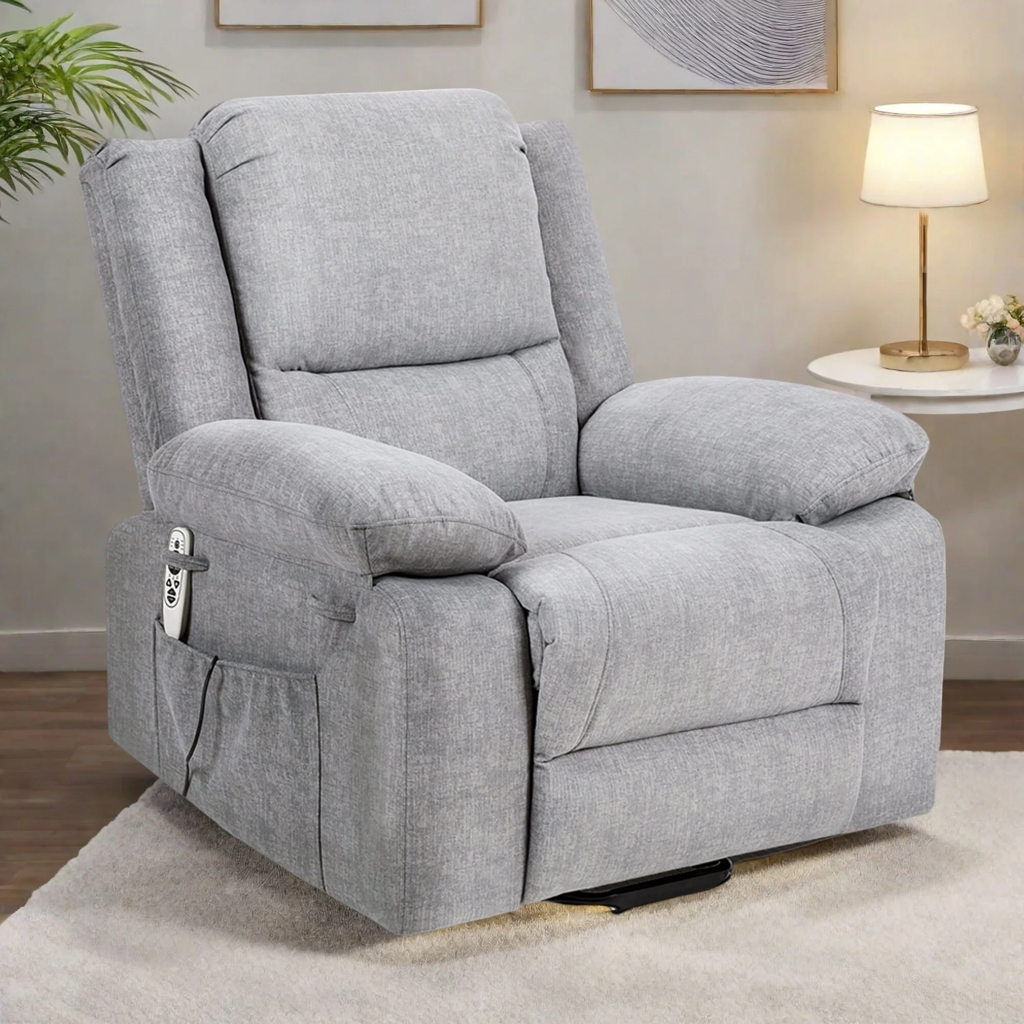 Blue Power Lift Recliner for Elderly with Remote & Side Pocket
