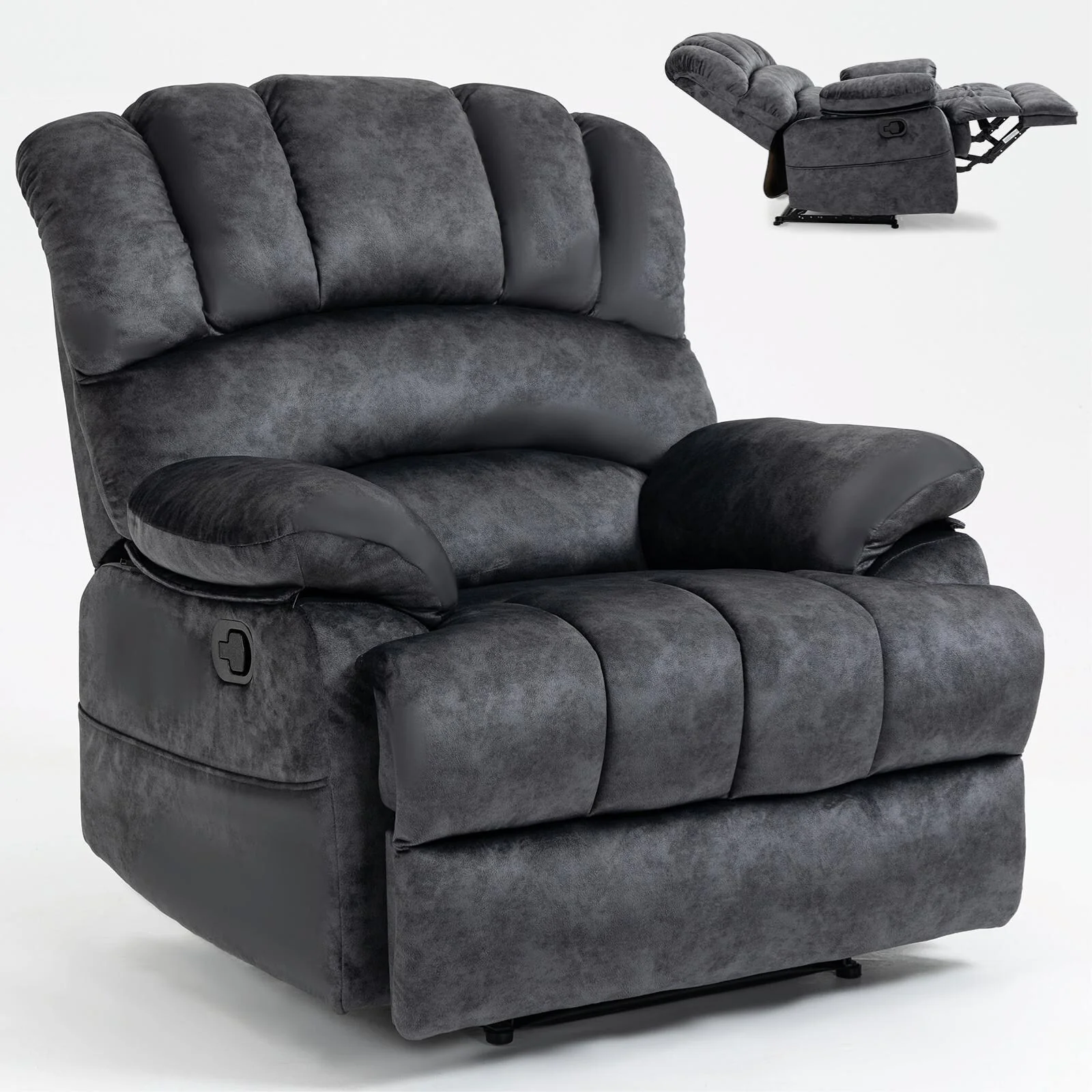 Large Manual Recliner Chair in Fabric for Living Room