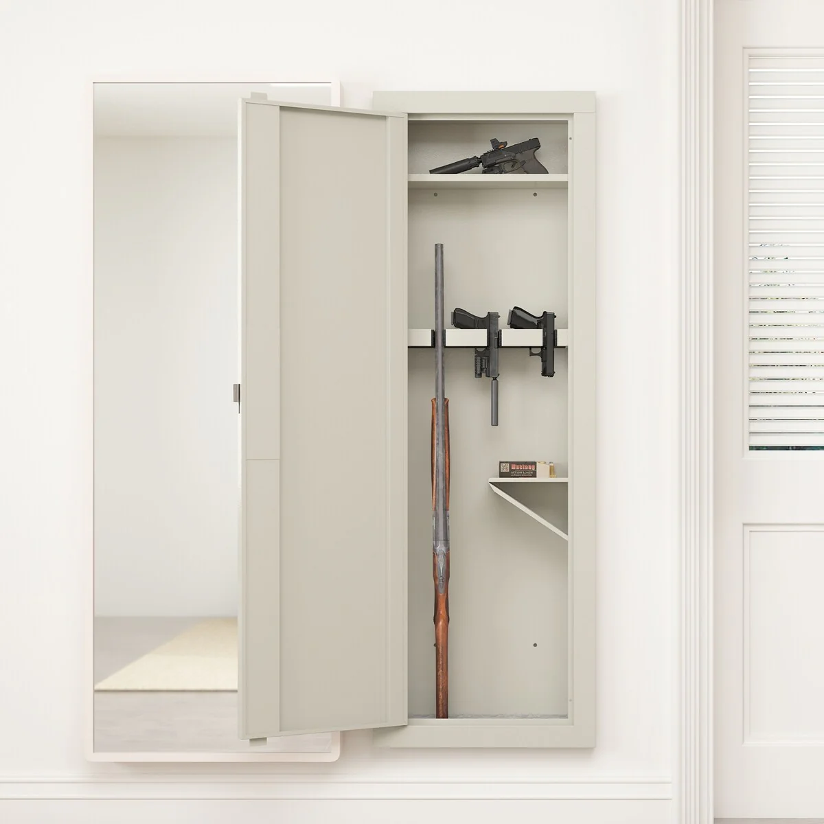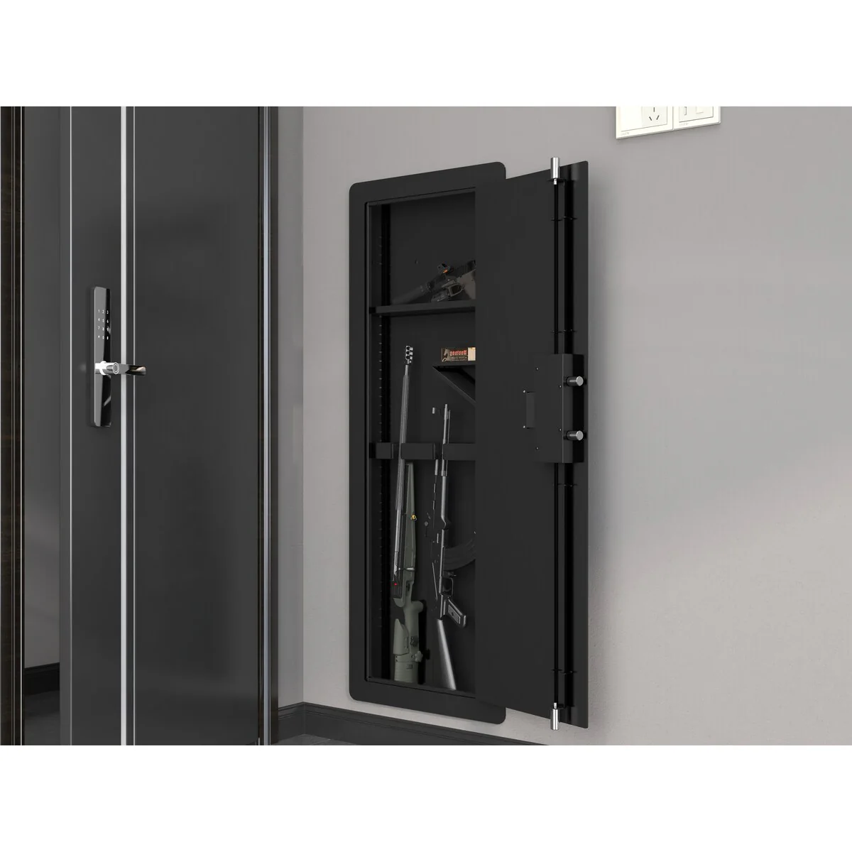 In Wall Hidden Gun Cabinet, Gun Safe w/ Keypad & Adjustable Rack
