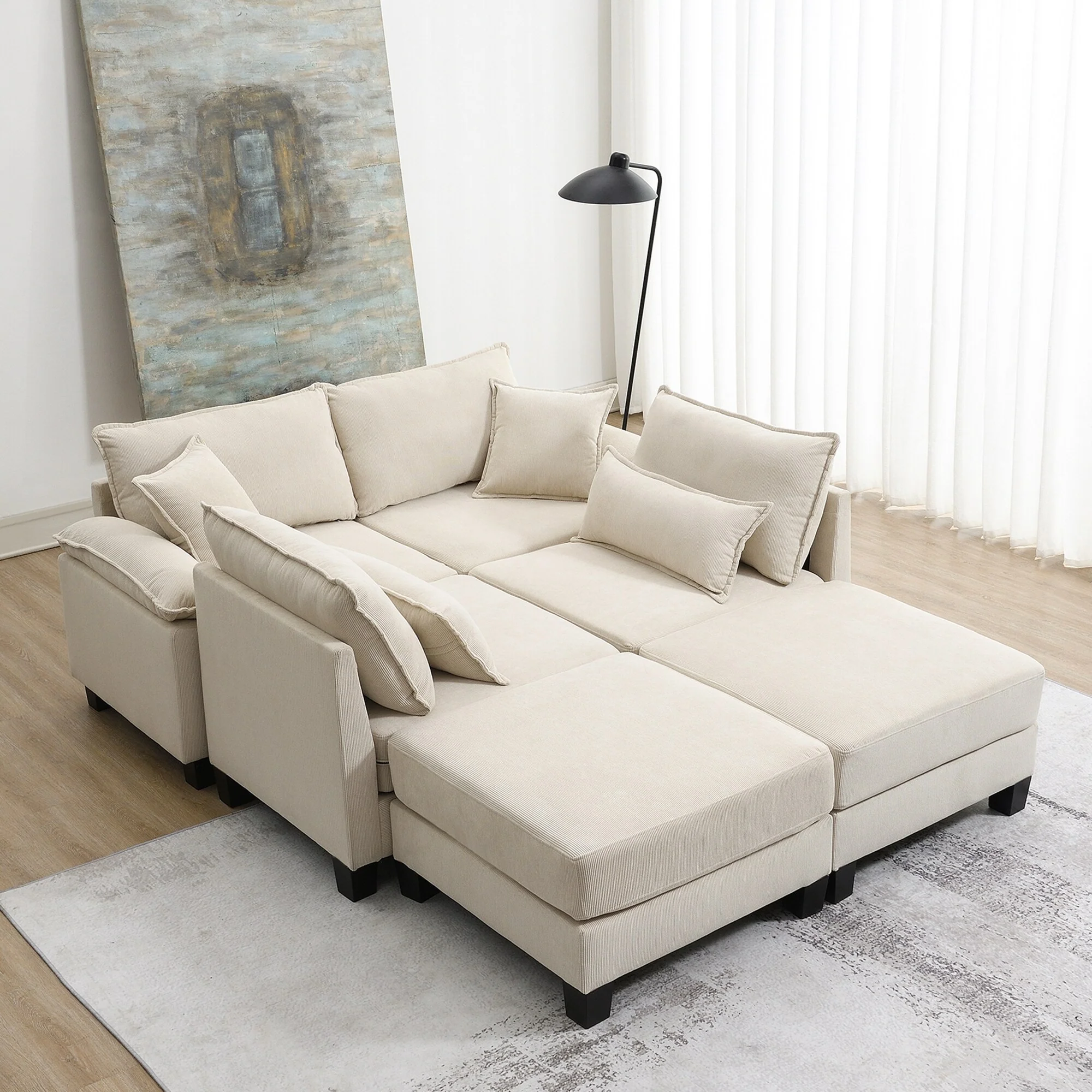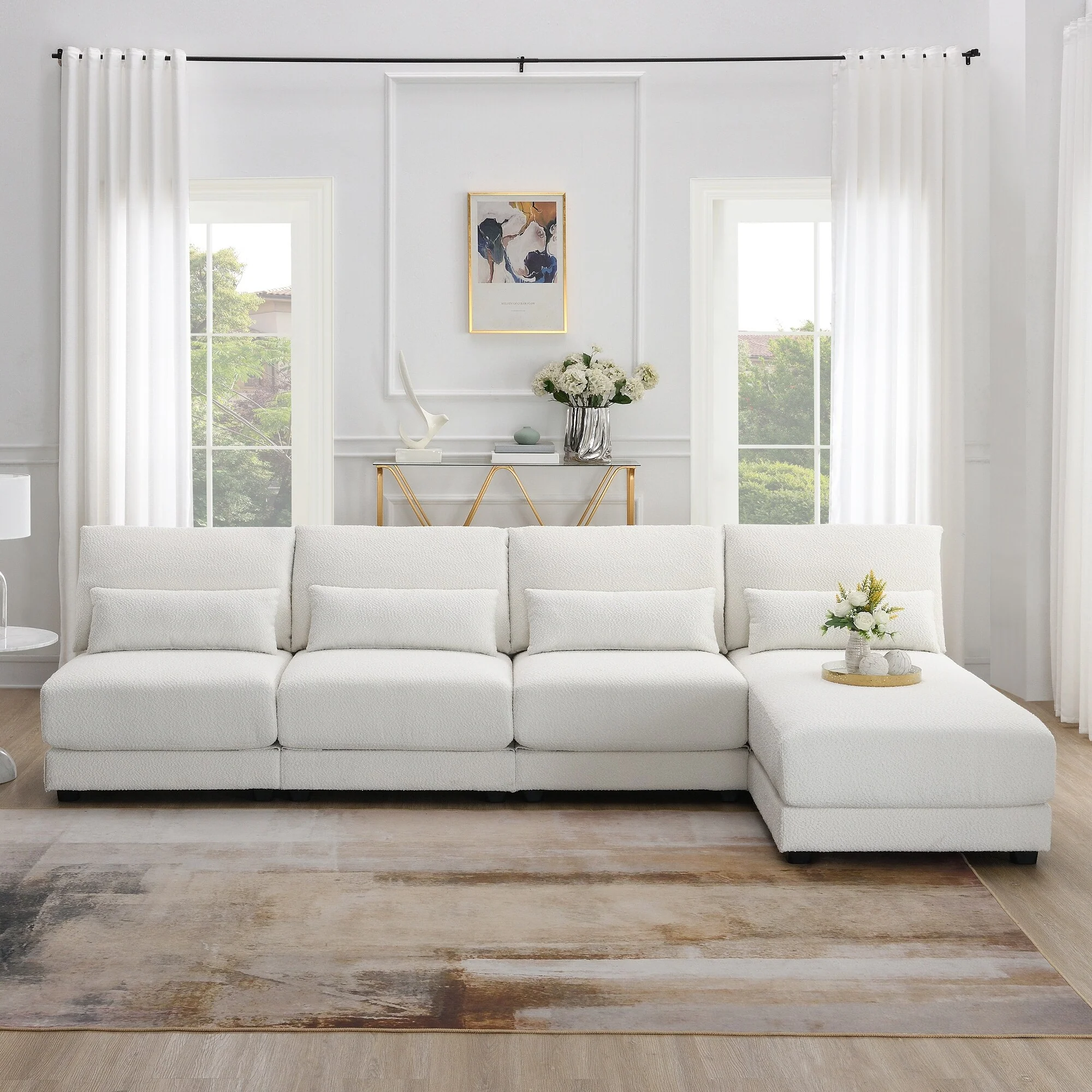 86.5 Chenille Modular Sofa with Storage Pockets, Movable Ottomans