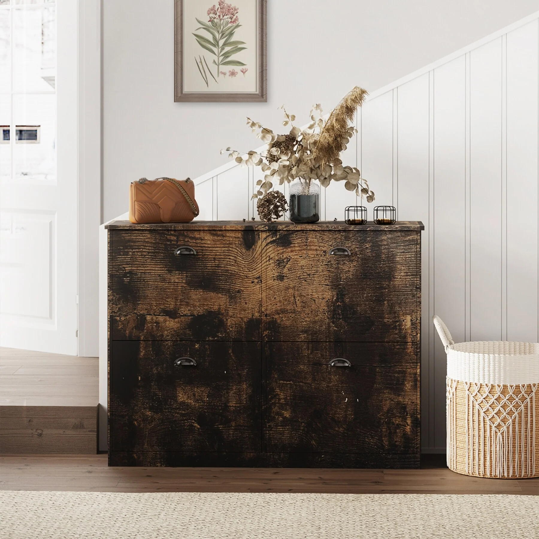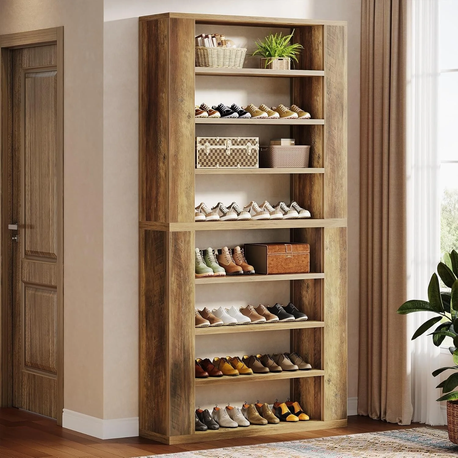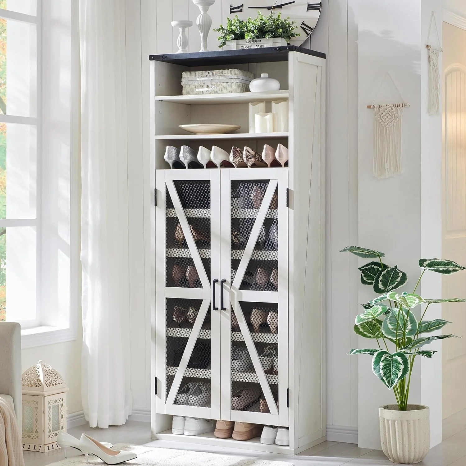 72 Tall Farmhouse Shoe Cabinet, Rustic Wooden Shoe Organizer