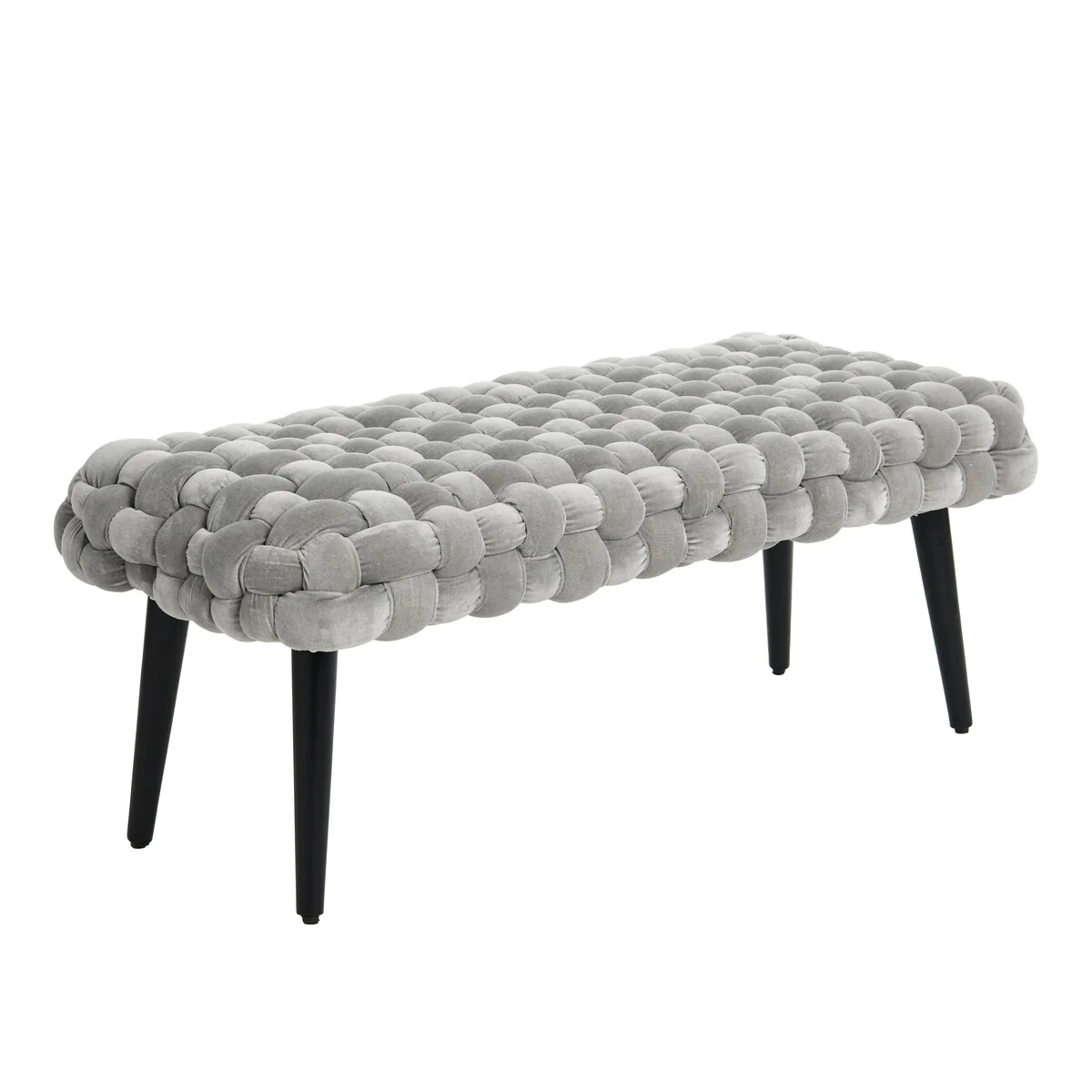 Chunky Woven Velvet Entryway Bench with Wood Legs