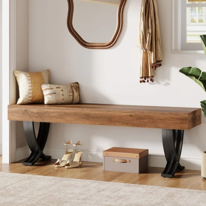 55-Inch Entryway Shoe Bench, Industrial Long End of Bed Bench