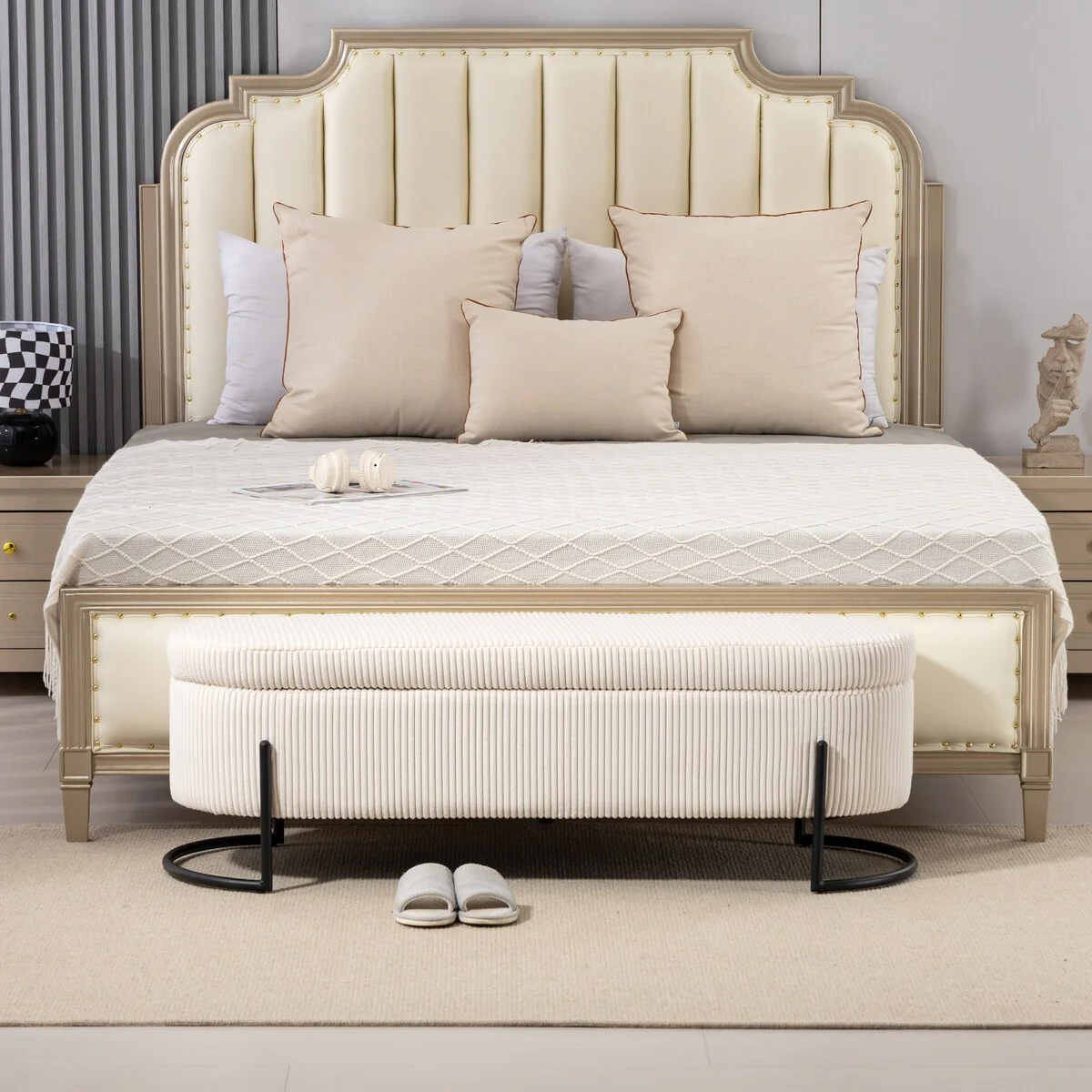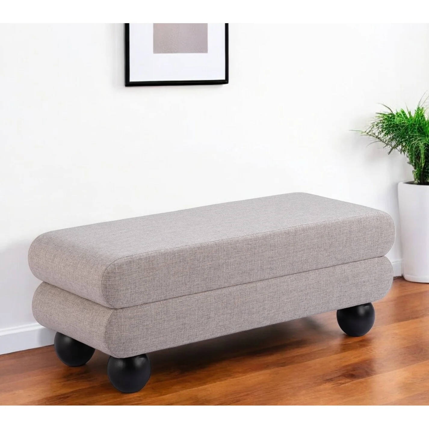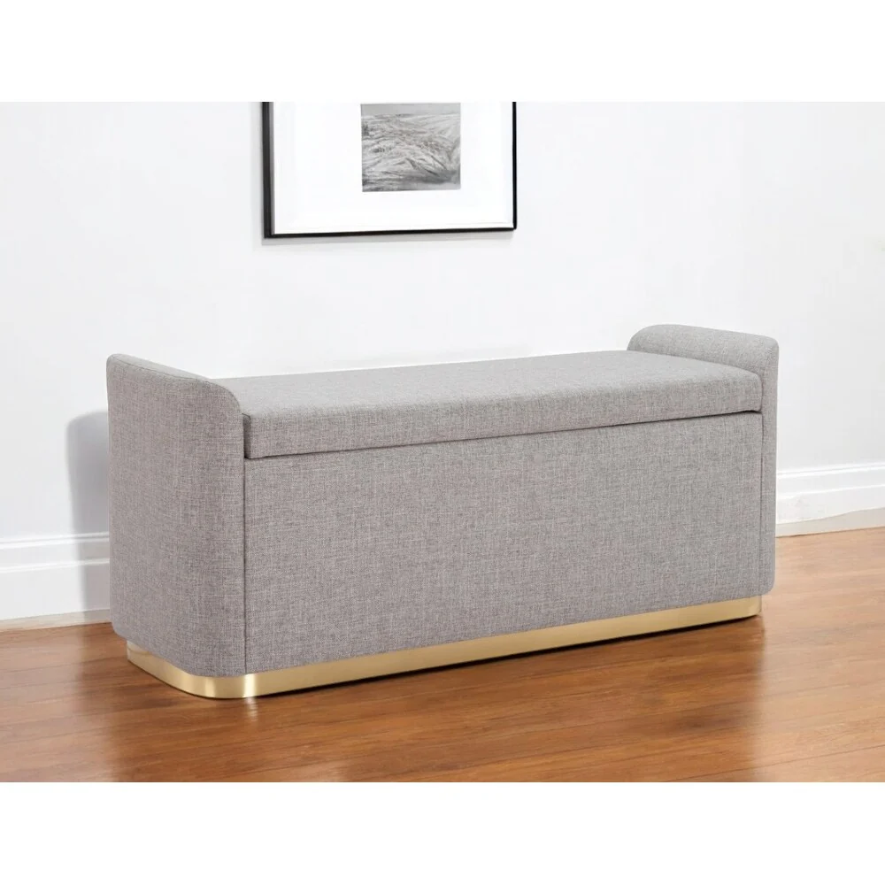 Fabric Upholstered Bench with Open Storage