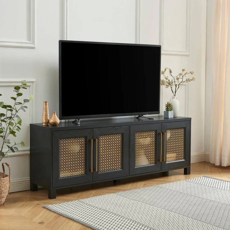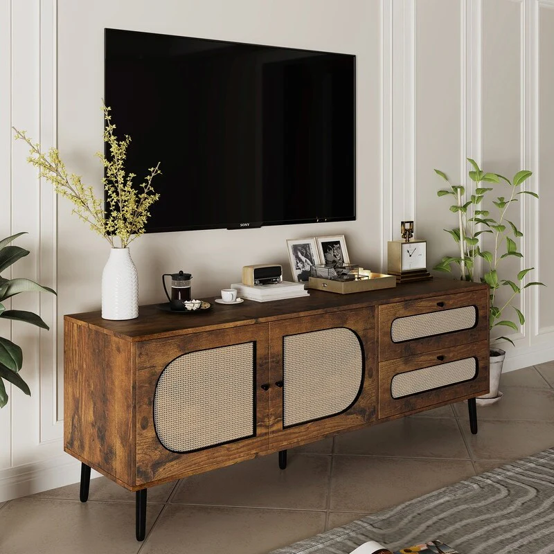 Classic Mid-Century Modern Wood 4-Door Cinnamon Brown TV Stand